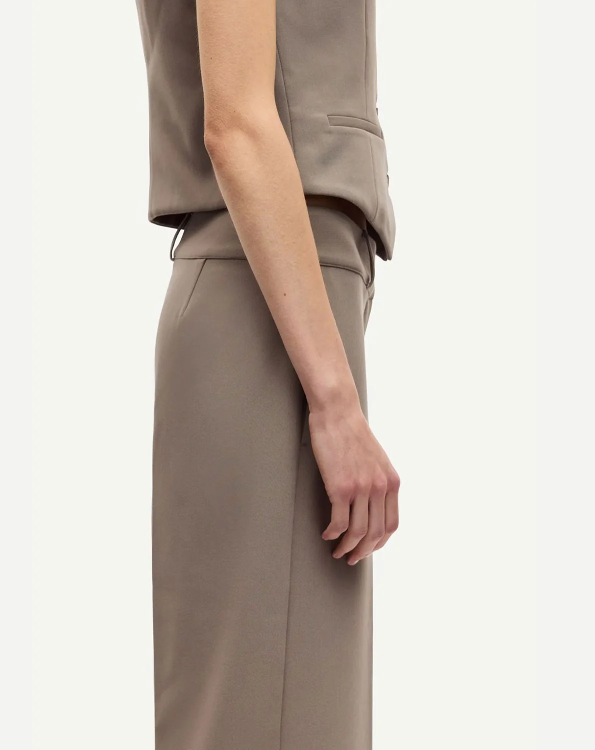 Pantalon taille basse, coupe regular et jambes droites. Braguette zippée et à crochet dissimulé. Poches latérales fendues sur le devant. Passants de ceinture.