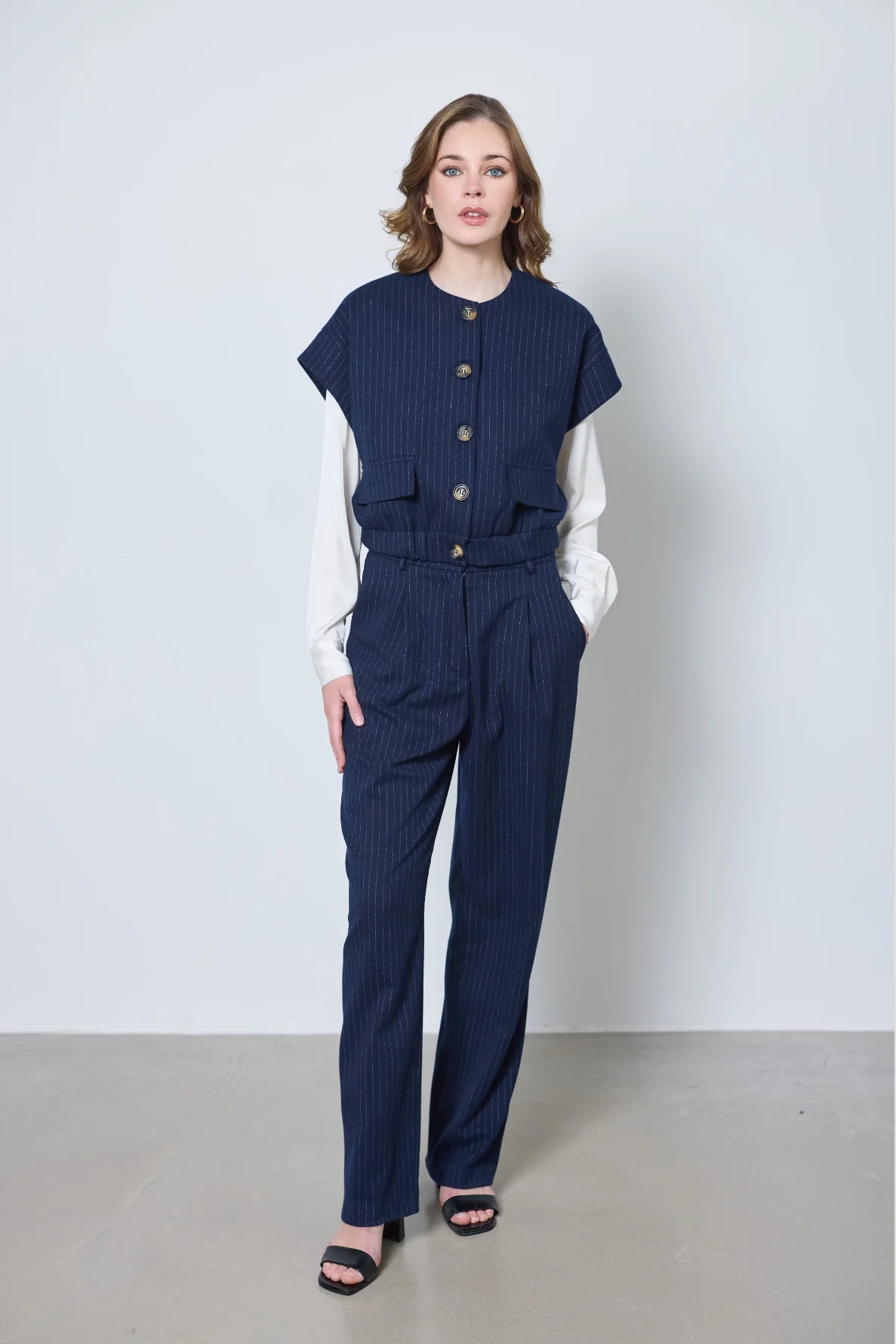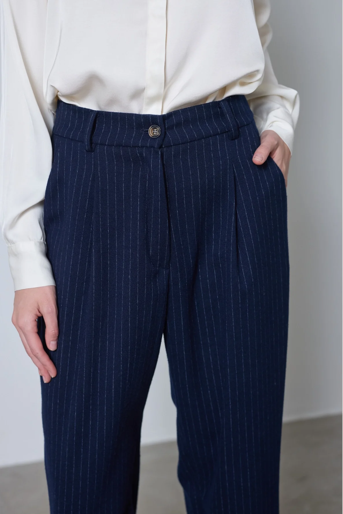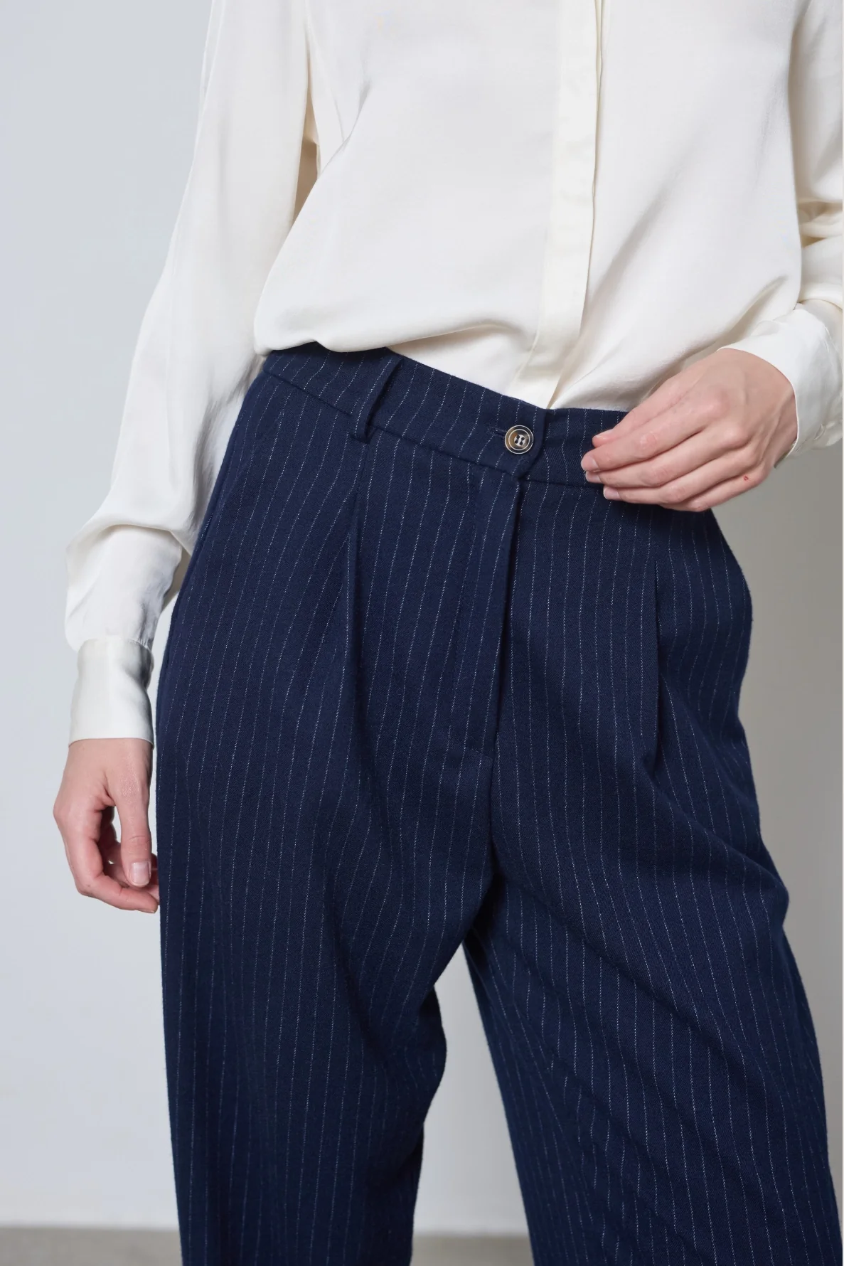 Le pantalon Jessica revisite le basique avec style. Sa coupe droite et son tissu rayé fluide offrent élégance et confort pour toutes vos tenues.