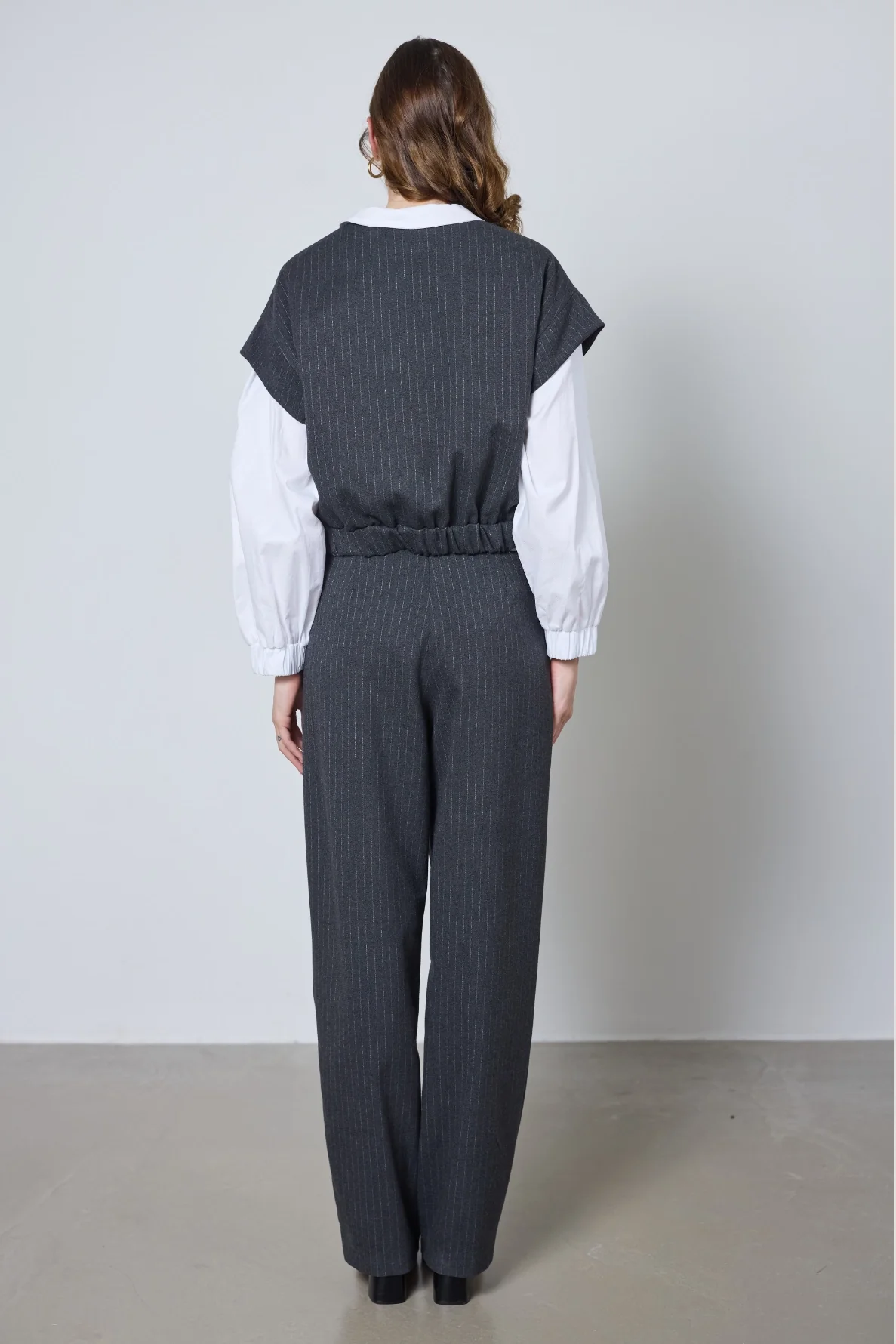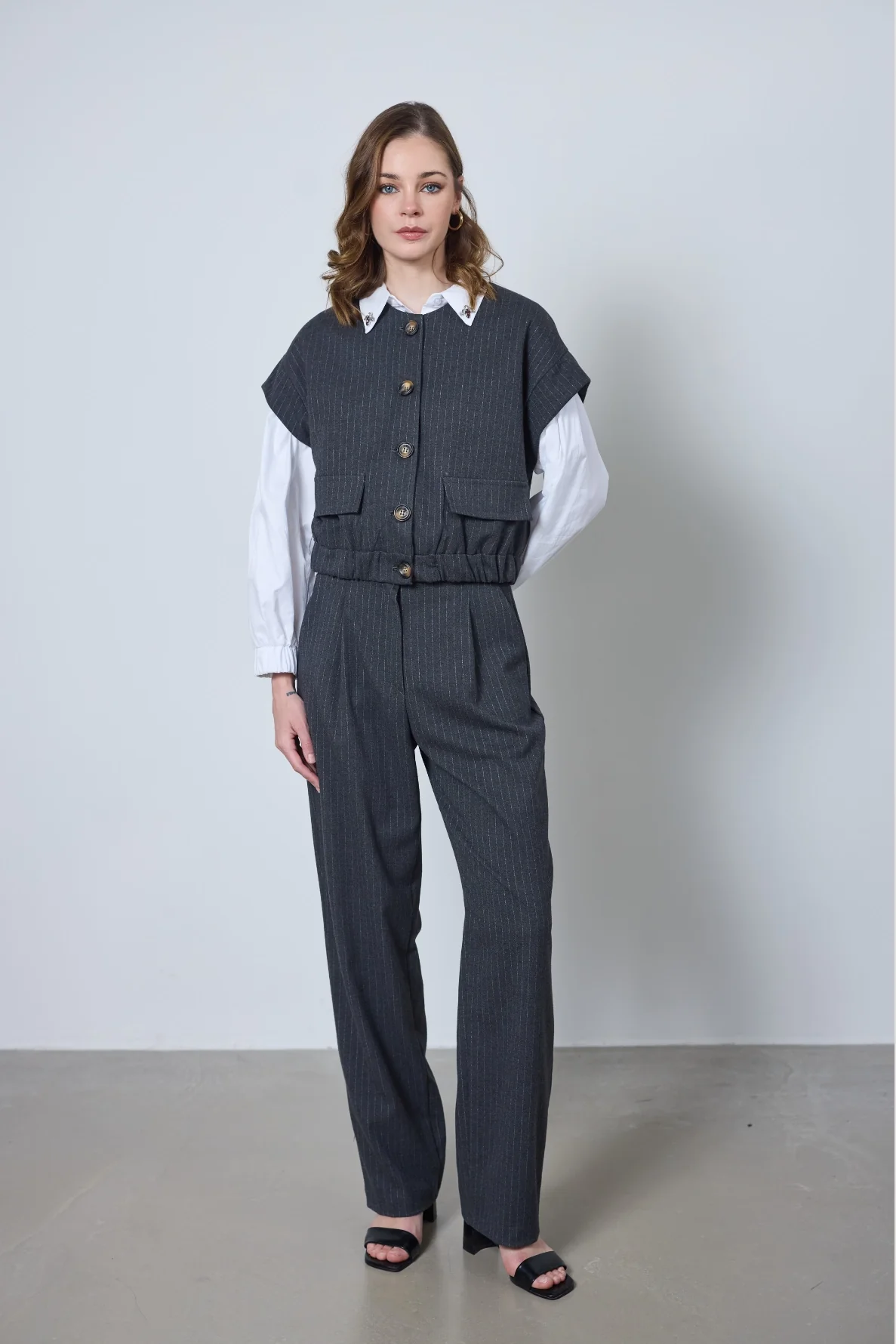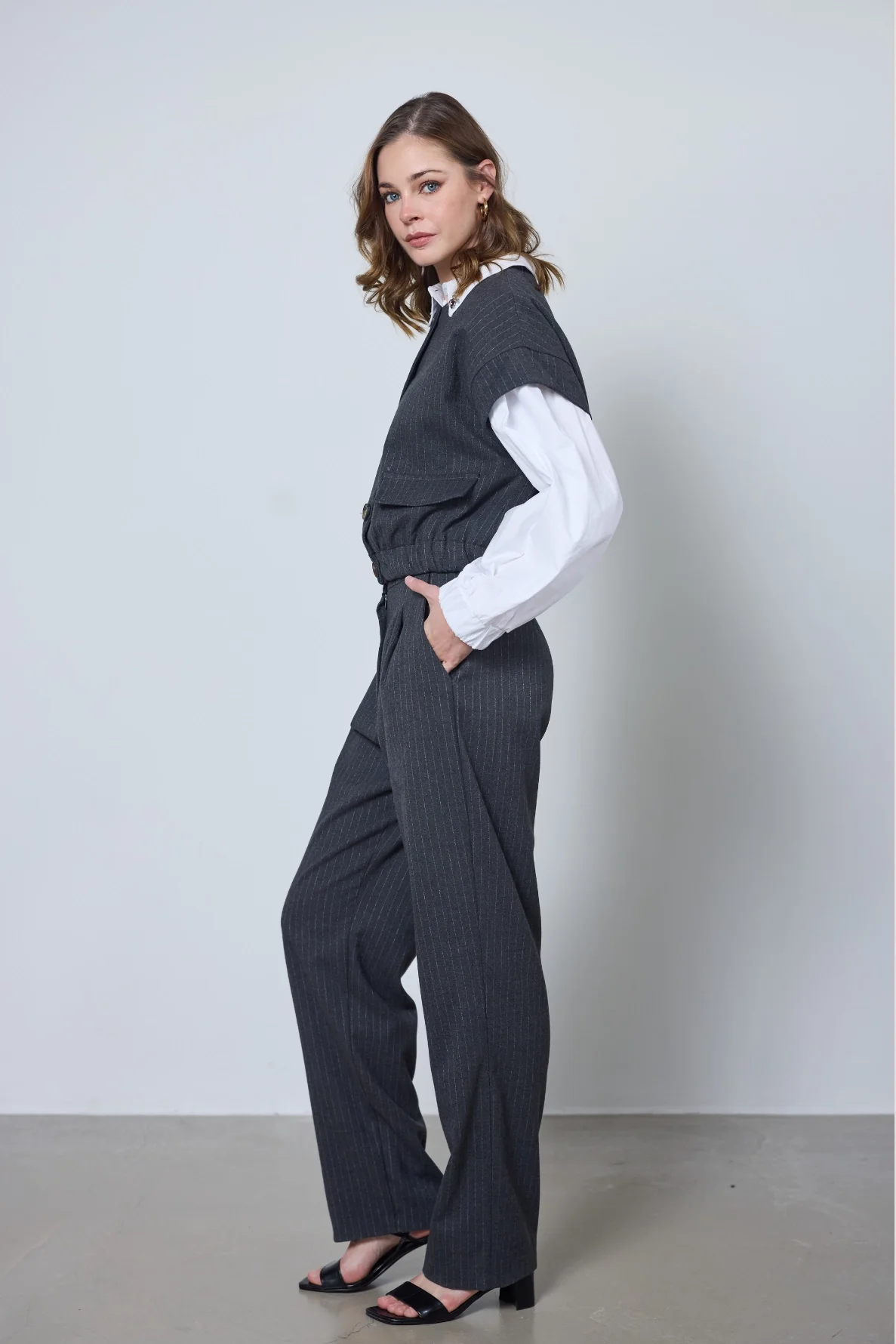 Le pantalon Jessica revisite le basique avec style. Sa coupe droite et son tissu rayé fluide offrent élégance et confort pour toutes vos tenues.