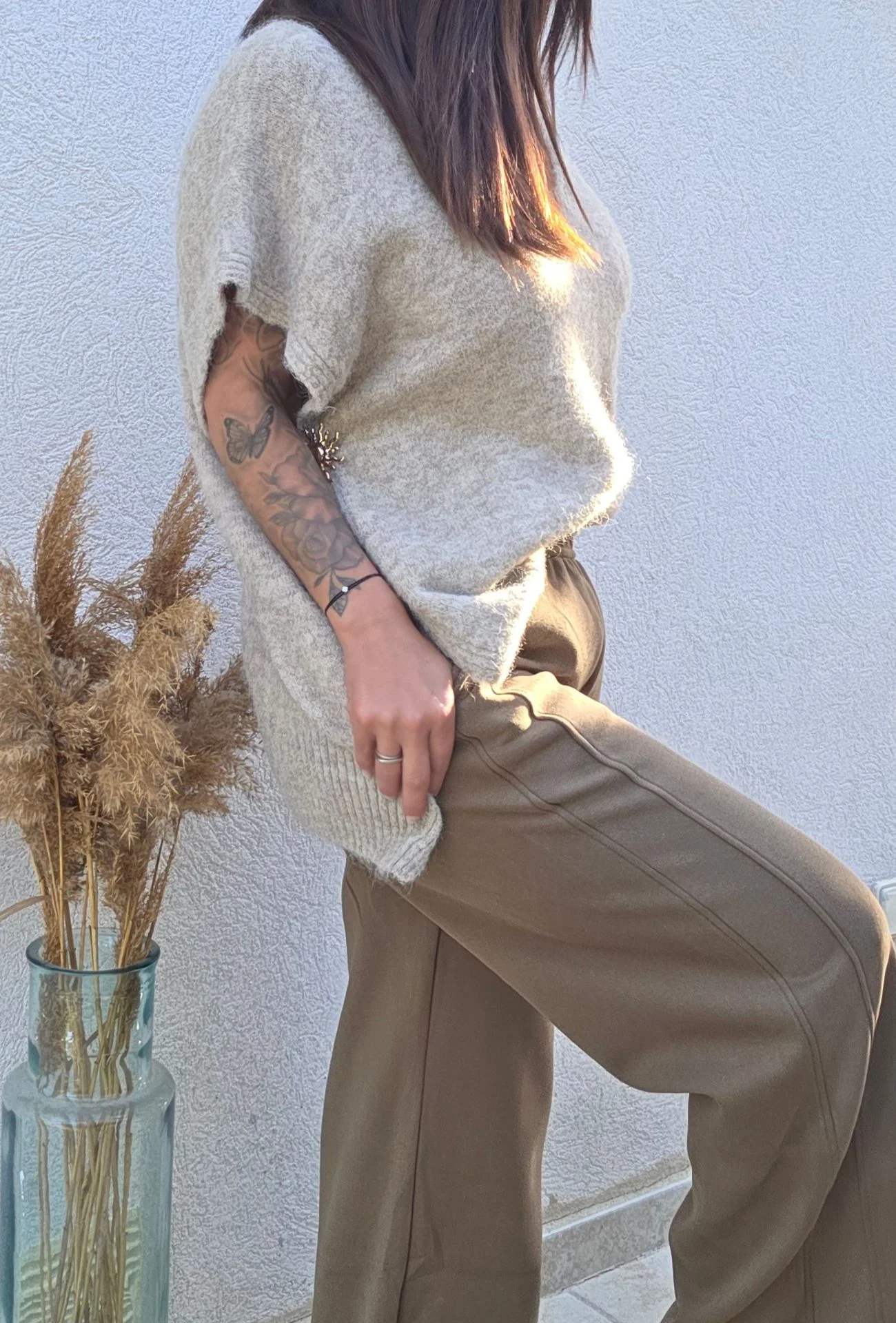 Avec sa taille élastiquée et sa ligne allongée par des coutures apparentes sur le devant, il apporte une touche sophistiquée sans sacrifier le confort. Facile à associer, il se porte aussi bien avec un pull douillet qu’avec une chemise fluide pour des styles variés selon vos envies.