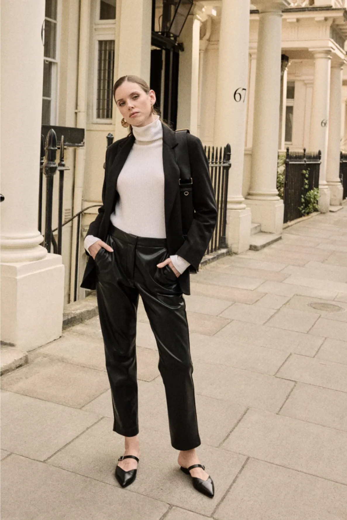 Le pantalon Laurène en simili cuir allie modernité et confort. Sa coupe droite et sa matière fluide apportent caractère et élégance à toutes vos tenues.