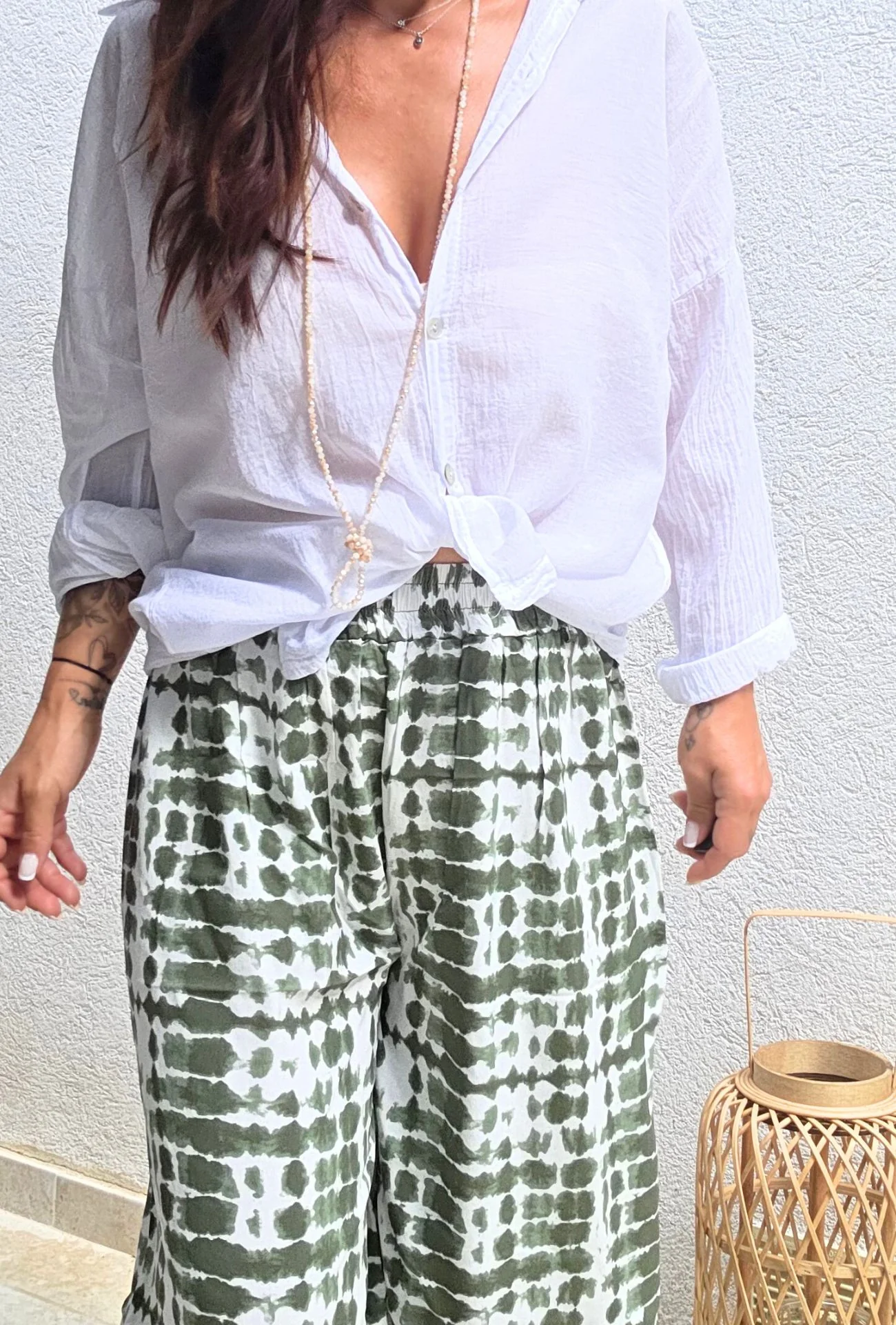 Conseil de style : Pour un look bohème chic, associez le pantalon TINA avec une chemise blanche oversize et un chapeau de paille. Ajoutez des sandales plates pour une tenue décontractée ou des talons pour une allure plus sophistiquée. Complétez votre look avec un sac en osier pour une touche estivale parfaite.