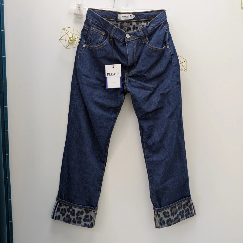 Découvrez notre jean de la marque italienne, un incontournable pour toute garde-robe moderne. Ce modèle se distingue par sa coupe droite qui flatte toutes les silhouettes, offrant confort et élégance. Sa couleur bleu foncé apporte une touche de sophistication, tandis que les grands revers en bas des jambes ornés d’un motif léopard ajoutent une note audacieuse et tendance.