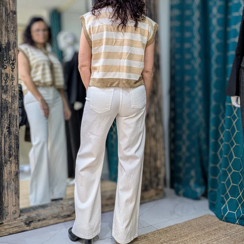 La coupe large de ce jean assure un confort inégalé, permettant une aisance dans chaque mouvement. Que vous le portiez avec un simple t-shirt pour un look décontracté ou avec une blouse élégante pour une sortie en ville, ce jean s’adapte à toutes les occasions. Sa couleur blanche polyvalente permet également de le marier facilement avec une variété de couleurs et de styles.