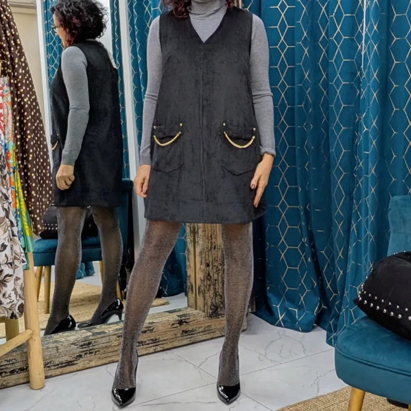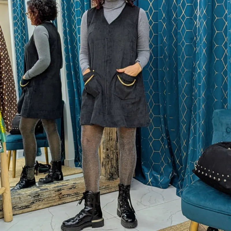 Découvrez la robe courte évasée de la marque italienne PLEASE, une pièce qui allie élégance et confort. Conçue pour les femmes modernes, cette robe sans manches est idéale pour une multitude d’occasions, qu’il s’agisse d’une sortie décontractée entre amis ou d’un événement plus habillé. Fabriquée en velours côtelé, elle offre une texture luxueuse et agréable au toucher, tout en ajoutant une note de sophistication à votre tenue.