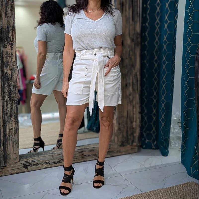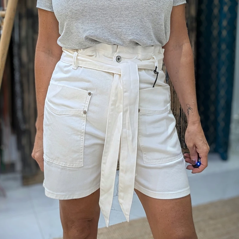 Ce modèle se distingue par sa taille haute et élastique, qui met en valeur votre silhouette tout en assurant un maintien optimal. La fermeture se fait facilement grâce à un bouton suivi d’une fermeture éclair, offrant à la fois praticité et style. De plus, le short est accompagné d’une ceinture, ajoutant une touche de sophistication à votre look.