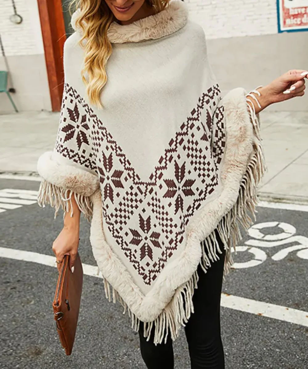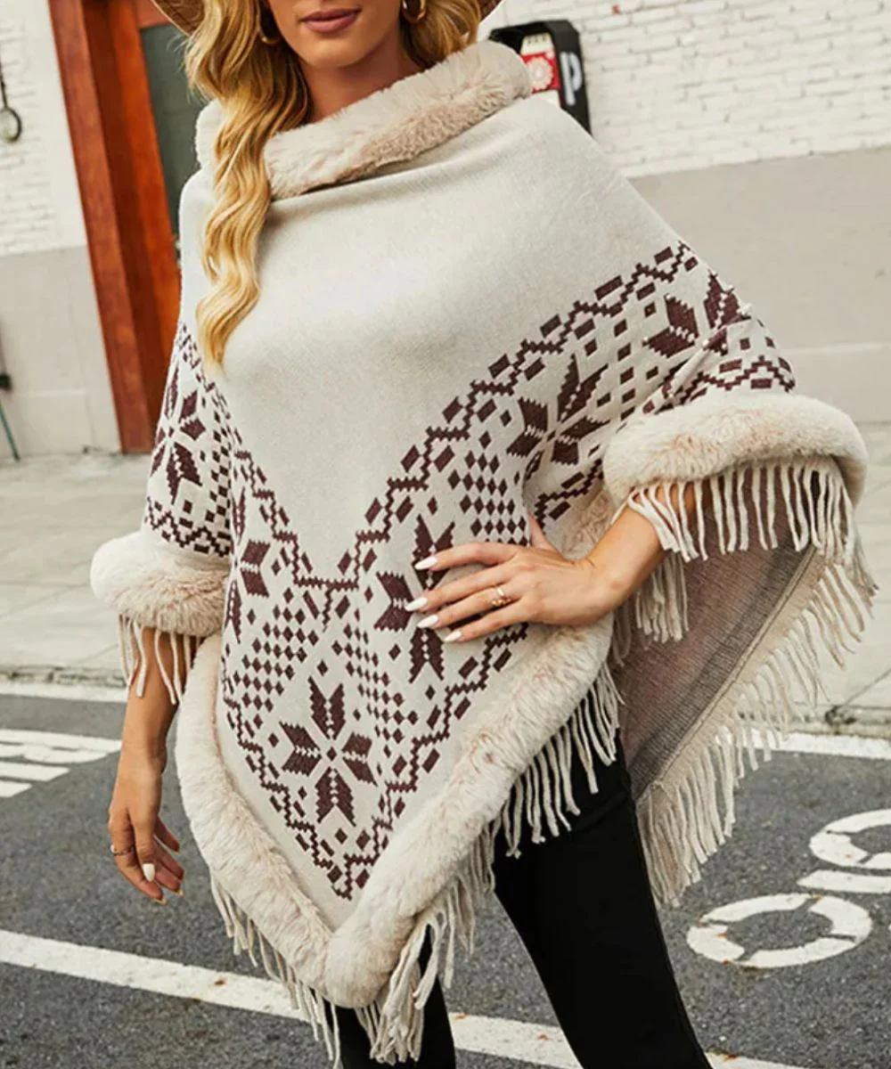 Un poncho au design ethnique au coloris beige. Il complète la tenue avec audace et dynamisme !