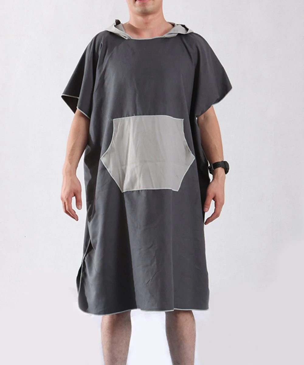 Plutôt qu’enfiler un pyjama ou une tenue décontractée difficile à porter lorsqu’on vient de se sécher, un poncho a ce grand avantage de sécher totalement les minutes après qu’ils soit enfilé, et permet de vous garder au chaud à l’abri des courants d’air après une bonne douche et une grosse journée de travail. Il est muni d’une double poche latérale vous permettant d’avoir votre téléphone à portée de main si besoin est, ou simplement de ranger vos mains en les gardant au sec, et aussi d’une capuche pour vos cheveux encore humides.