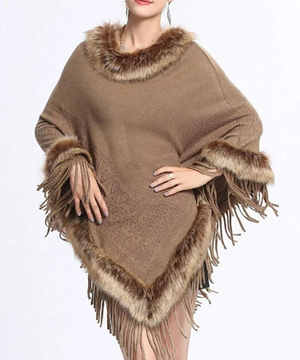 Le poncho femme confectionné en laine et en fausse fourrure fait partie des ponchos douillets et protecteurs
