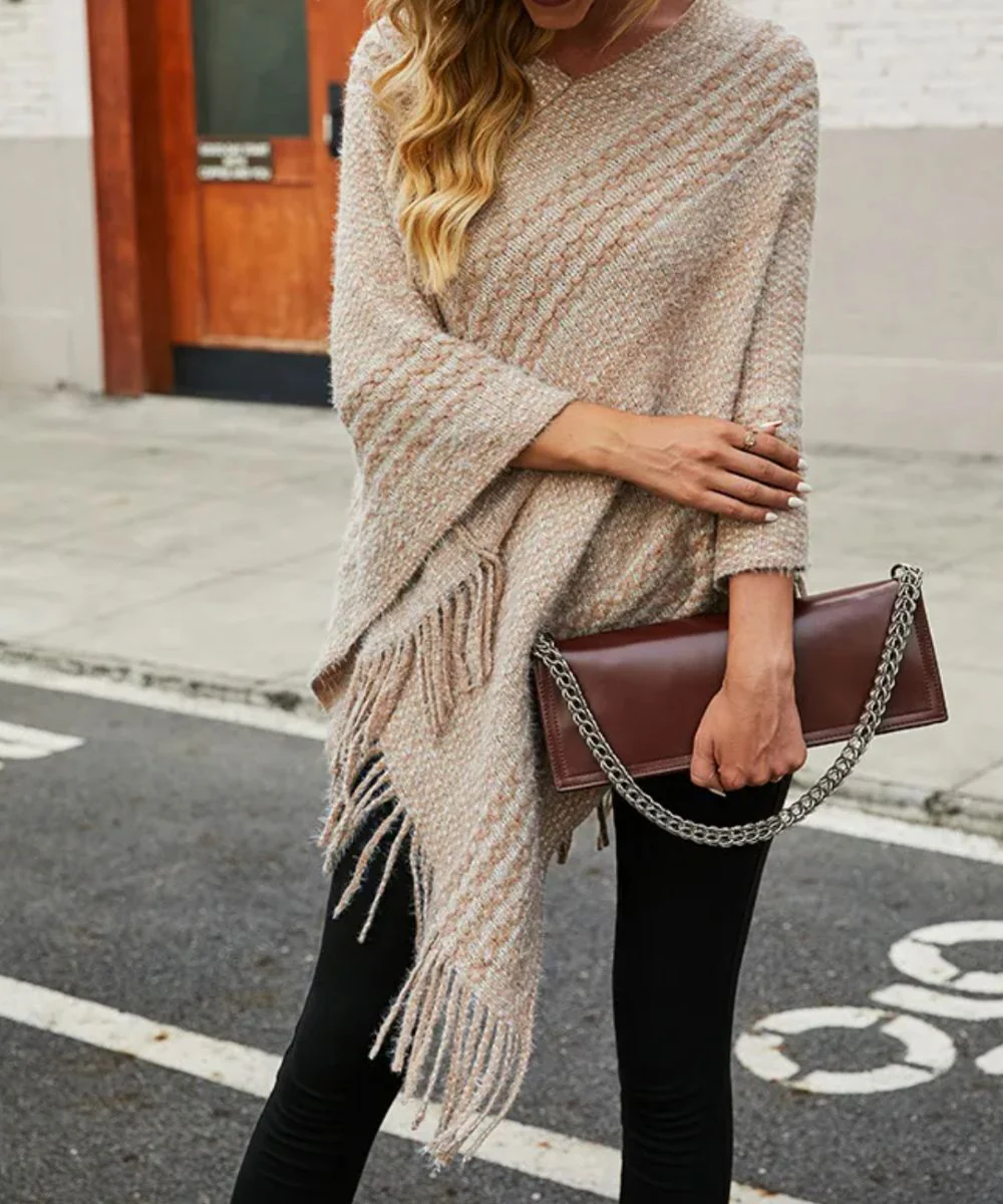 Notre poncho au look écru pour femme est décliné en trois couleurs élégantes, pour un look détonant !