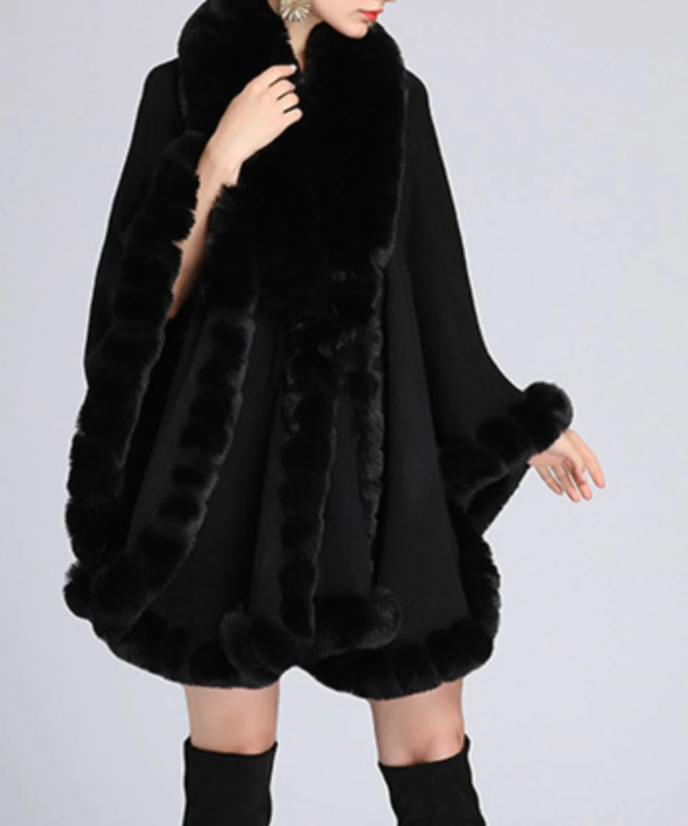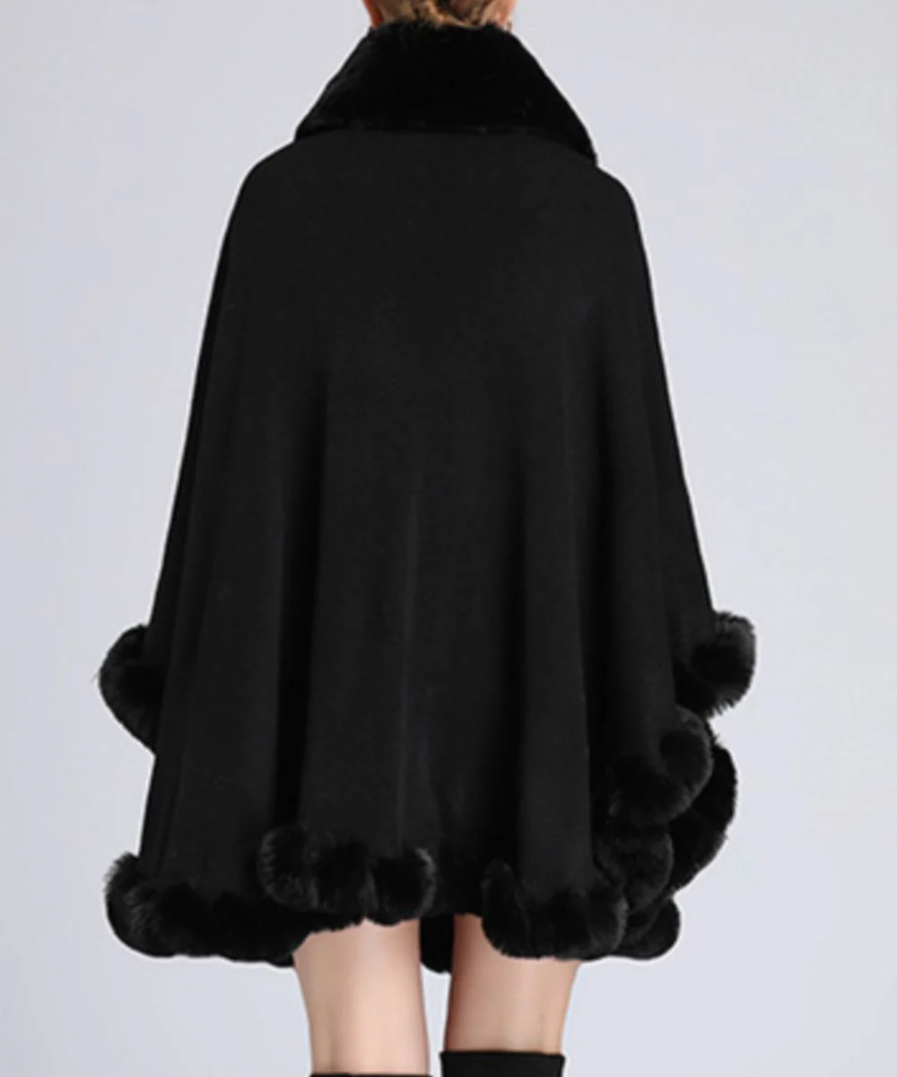 Ce poncho noir femme à fourrure est un classique sublime des longues journées froides d’hiver.