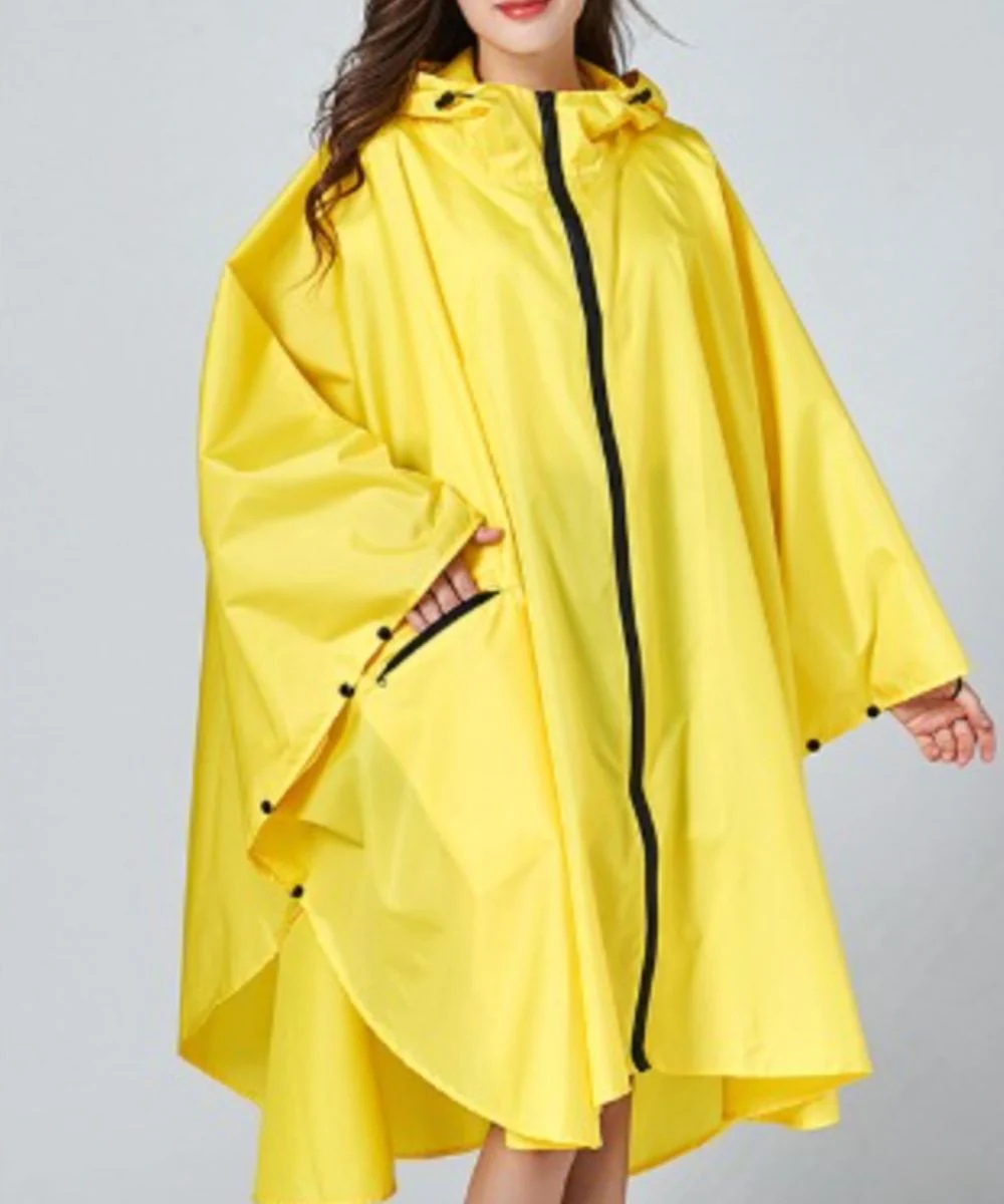Un poncho jaune pour vous rendre bien visible dans la nature, et surtout protégée de la pluie lors des balades !