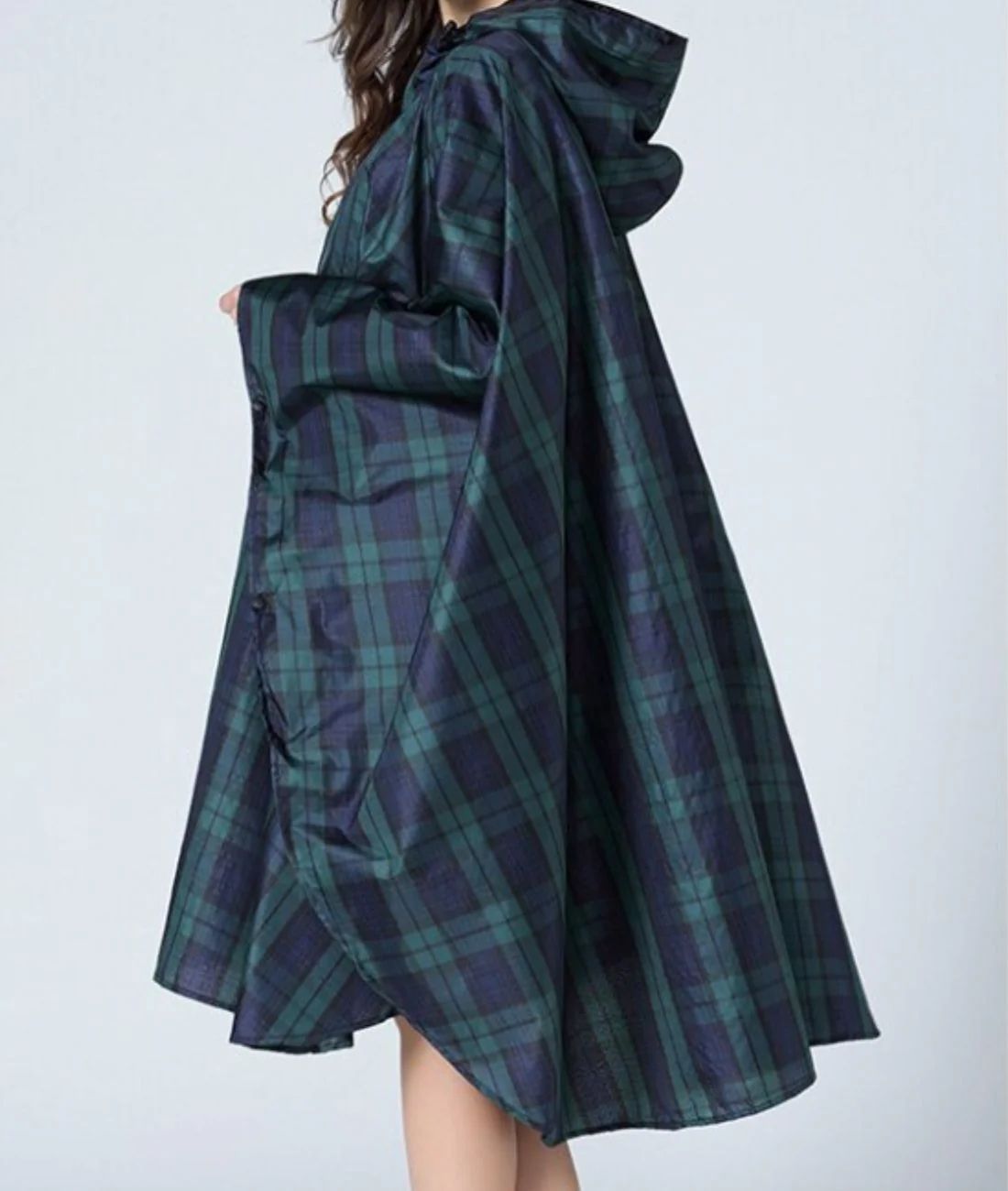Il offre également un effet coupe-vent très apprécié de nos clientes, c’est un habit deux en un qui offre ce que tout autre vêtement ne peux offrir ! Un parapluie ? Un manteau ? Ils ont au moins un de ces inconvénients. Un ciré long éventuellement, bien que ce dernier n’offre pas autant d’amplitude et d’aisance que notre poncho de pluie sur les manches ! Se sentir à l’aise dans ses mouvements étant un point clé tout autant que le reste. Coté design il vous fera penser aux Highlands d’Écosse chargés d’histoire ! Contrasté de bleu et de verres, ces deux couleurs s’entremêlent avec des carreaux. Il possède une fermeture éclair au devant pour un enfilage très facile.