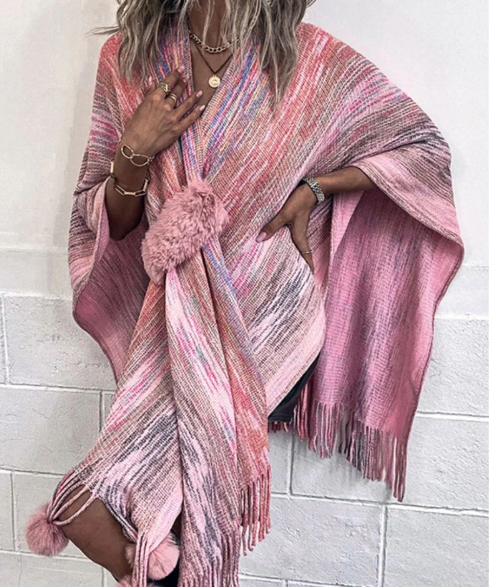 Notre long poncho rose est un habit très classe, mais qui saura mettre en valeur votre féminité en vous gardant au chaud !