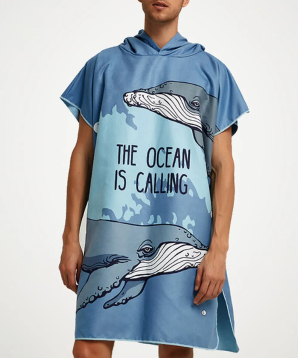 Il est assez grand et ample pour vous permettre de retirer votre combinaison de surf ou de planche à voile sans encombre, et permet de vous en servir comme une serviette grâce à sa confection en micro fibres absorbante. Très pratique, il s’enfile par le cou avec son passant et possède une capuche ainsi que des manches courtes et amples vous permettant de les enfiler au dessous pour remettre vos vêtements et enlever les autres. Un poncho pour homme mais également unisexe, d’une grande utilité et avec un coté pratique très apprécié.