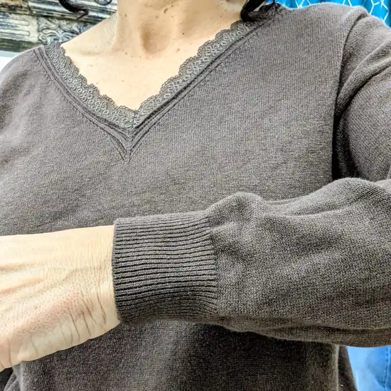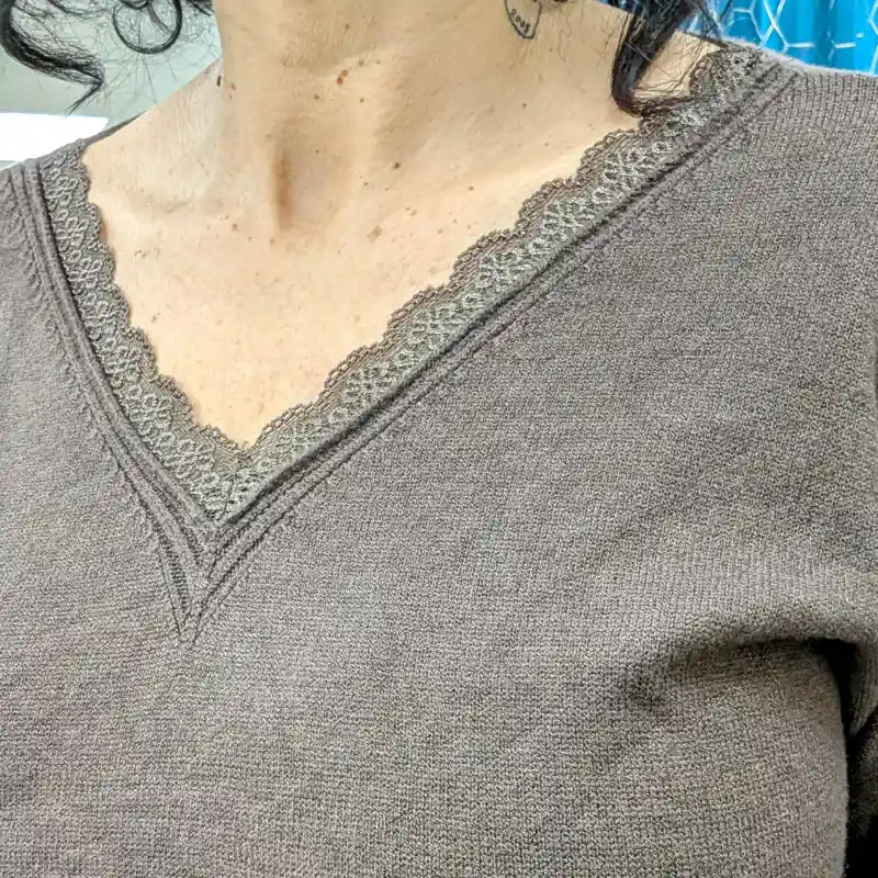 Découvrez notre pull basic encolure en V orné de dentelle : l’élégance au quotidien