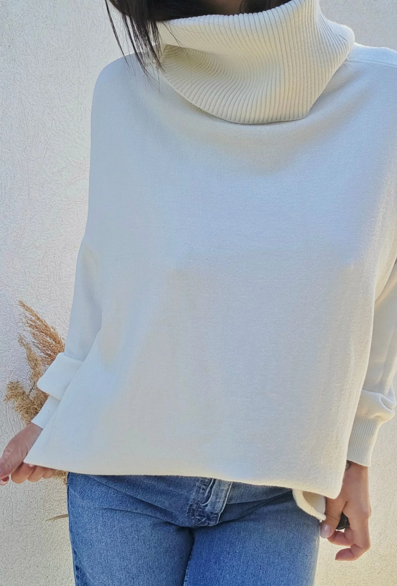 Le pull COLETTE blanc crème est une pièce douce et élégante qui combine confort et modernité. Avec son col roulé généreux et sa coupe légèrement oversize, il vous enveloppe de chaleur tout en offrant une allure tendance et féminine. Sa maille souple et fluide le rend agréable à porter au quotidien, tout en ajoutant une touche raffinée à vos tenues.