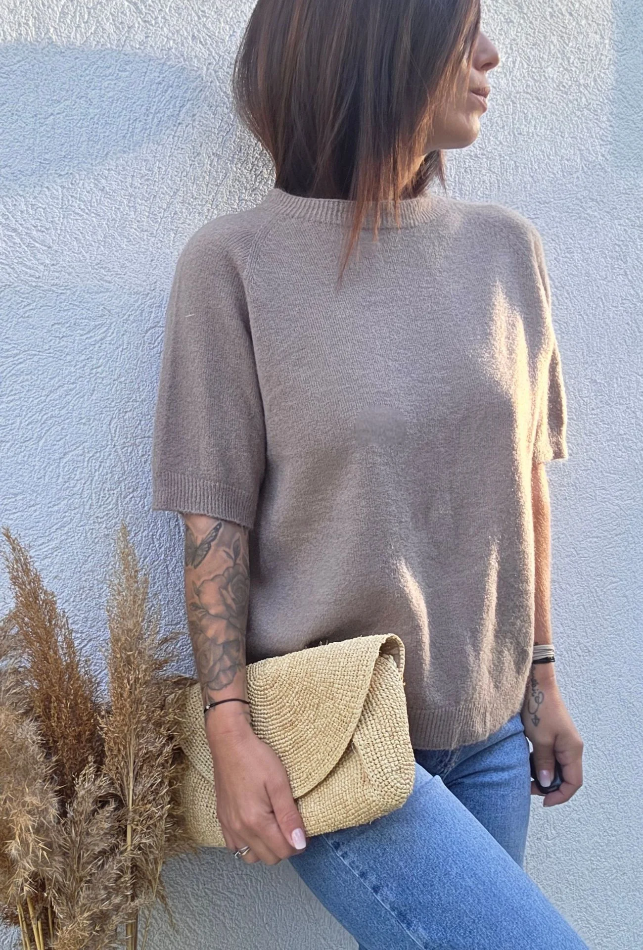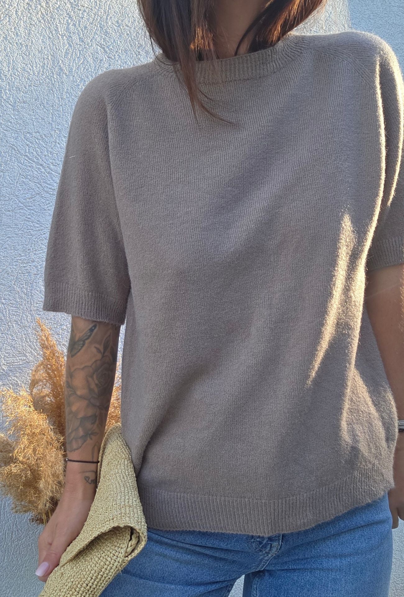 Élégant et facile à porter, le pull FLORE taupe est une pièce incontournable pour vos looks de saison. Avec ses manches courtes et son col rond légèrement montant, il combine simplicité et raffinement pour un style chic et moderne. Sa coupe fluide en taille unique s’adapte à toutes les morphologies et offre un tombé impeccable, idéal aussi bien pour un look casual que pour une tenue plus habillée.