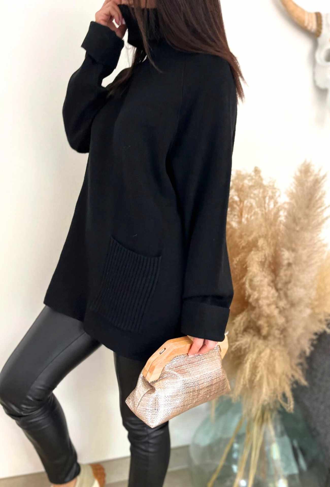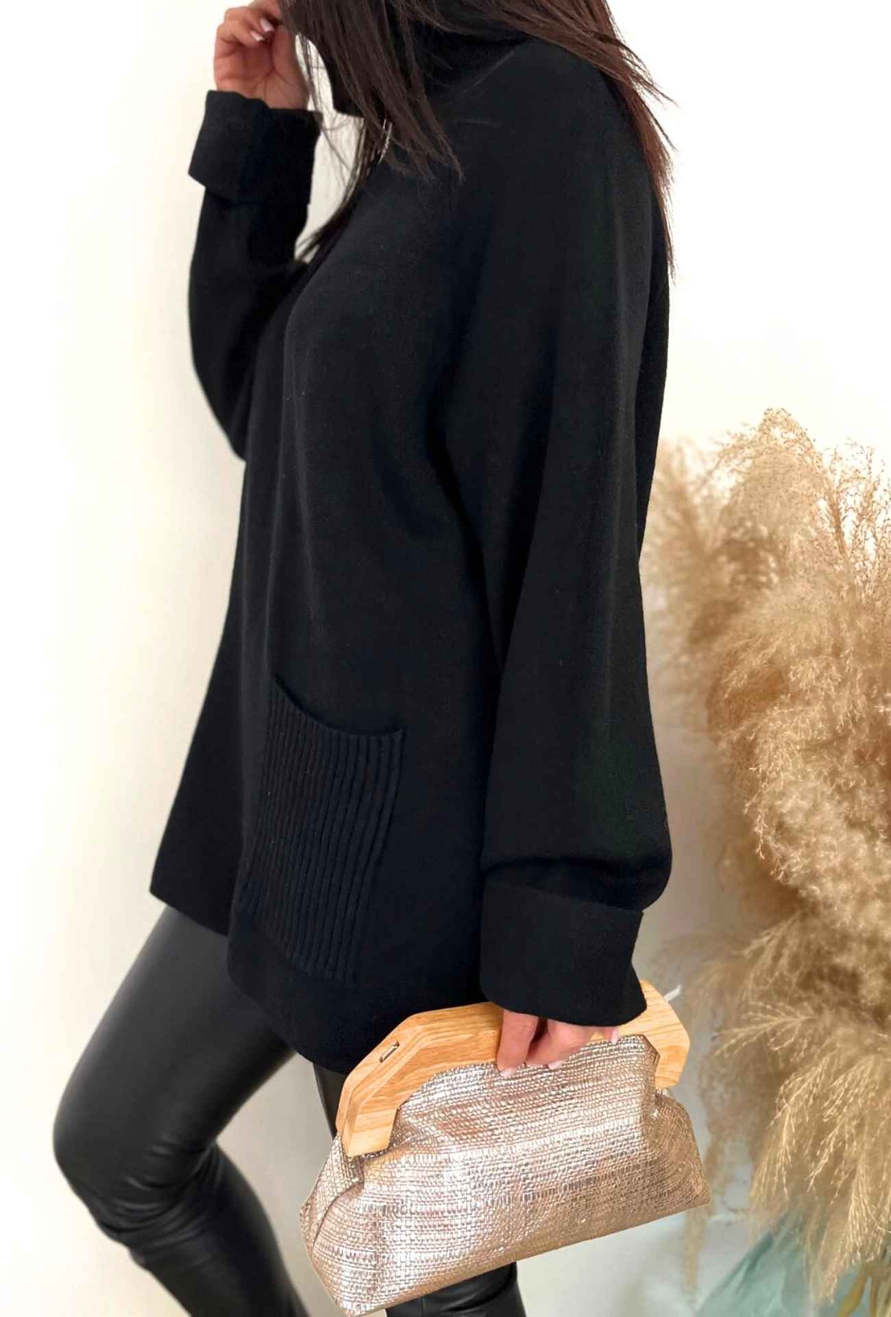 Adoptez l’élégance intemporelle avec le pull KIKO en noir, parfait pour affronter les journées fraîches avec style. Sa coupe ample et son col roulé généreux offrent un confort inégalé, tandis que les poches plaquées en maille côtelée et les boutons dorés sur les manches viennent sublimer ce basique revisité.
