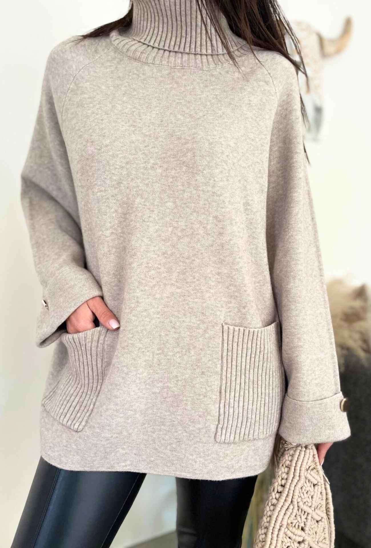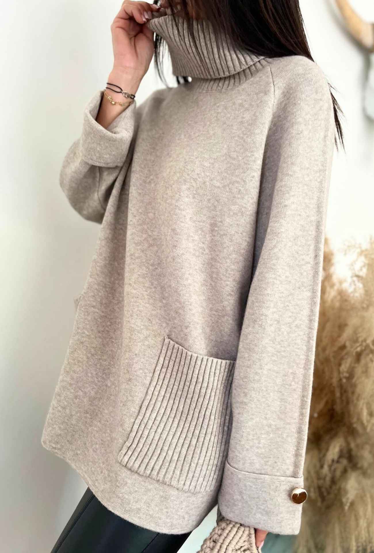 Le pull KIKO est conçu pour celles qui souhaitent associer confort et style. Sa coupe loose flatte toutes les silhouettes, tandis que son col roulé protège du froid avec élégance. Les détails soignés comme les poches côtelées et les boutons dorés ajoutent une touche chic à cette pièce incontournable.