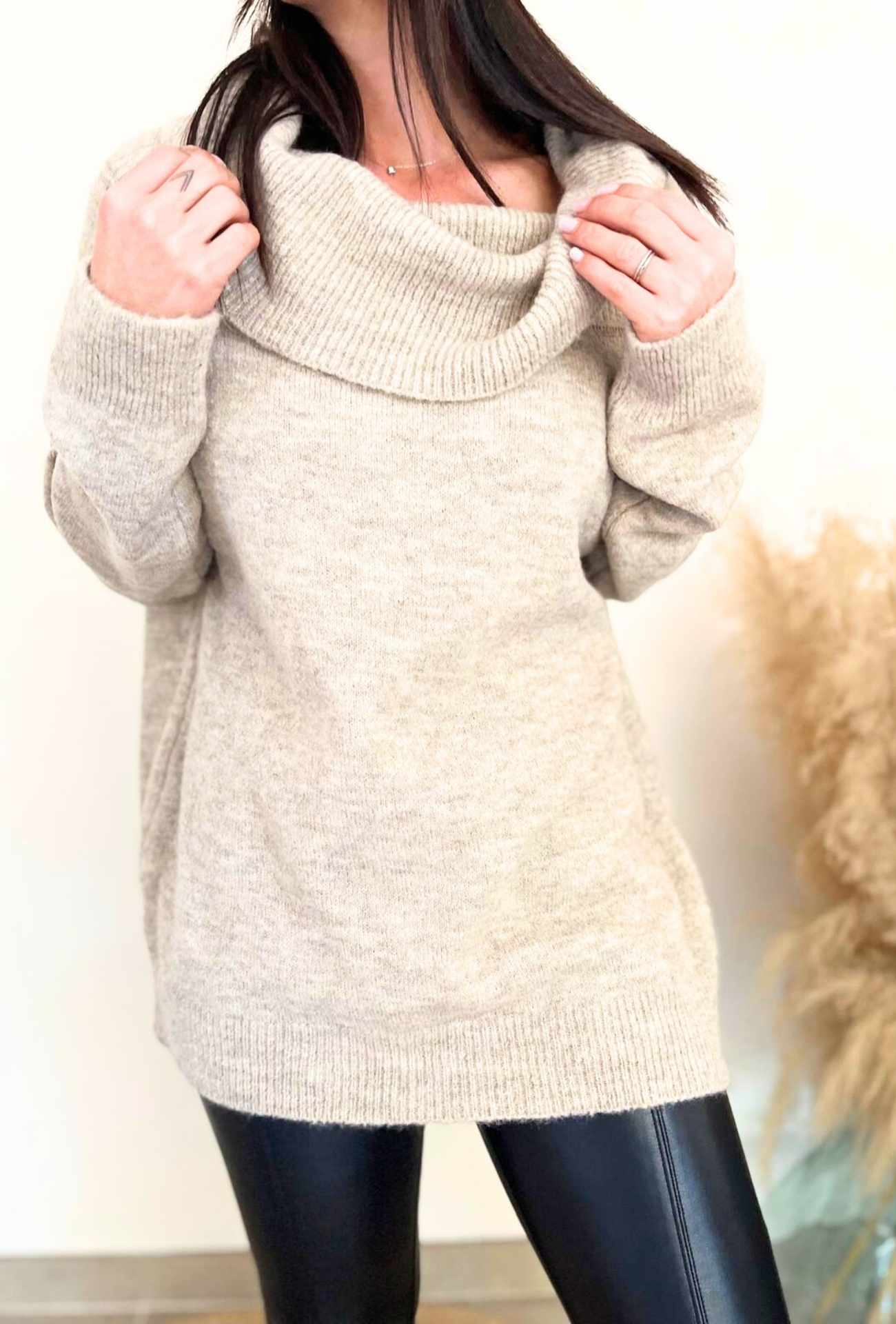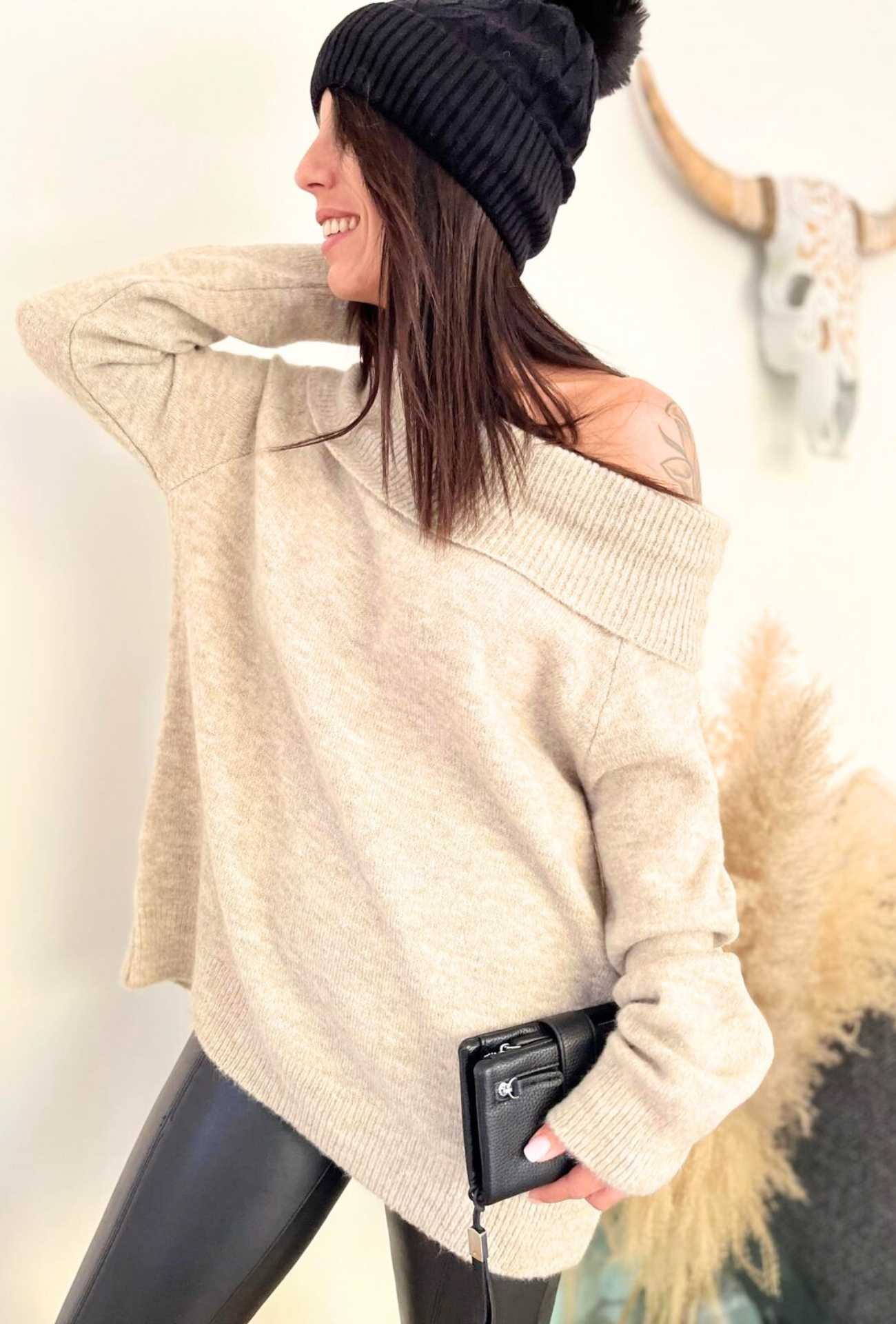 Ce pull combine confort et style avec brio. Sa teinte taupe intemporelle s’associe aisément avec tous vos bas, tandis que son col large ajoute une note tendance qui sublime le port de tête. Idéal pour un look cosy sans effort, il est aussi doux que stylé.