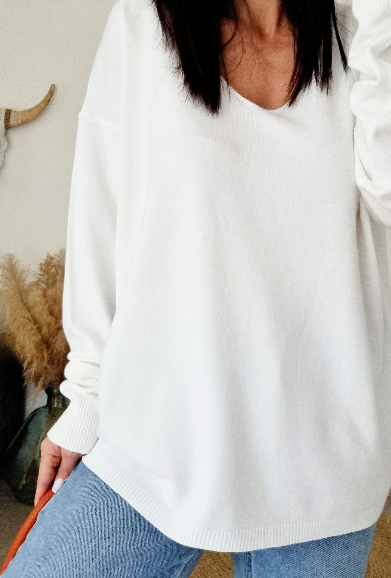 Le pull EMY en blanc est une pièce incontournable pour un look à la fois lumineux et élégant. Avec sa coupe fluide et son encolure en V subtile, il offre une allure casual chic, idéale pour toutes les occasions. Léger et confortable, il deviendra rapidement l’un de vos indispensables pour un style minimaliste et moderne.