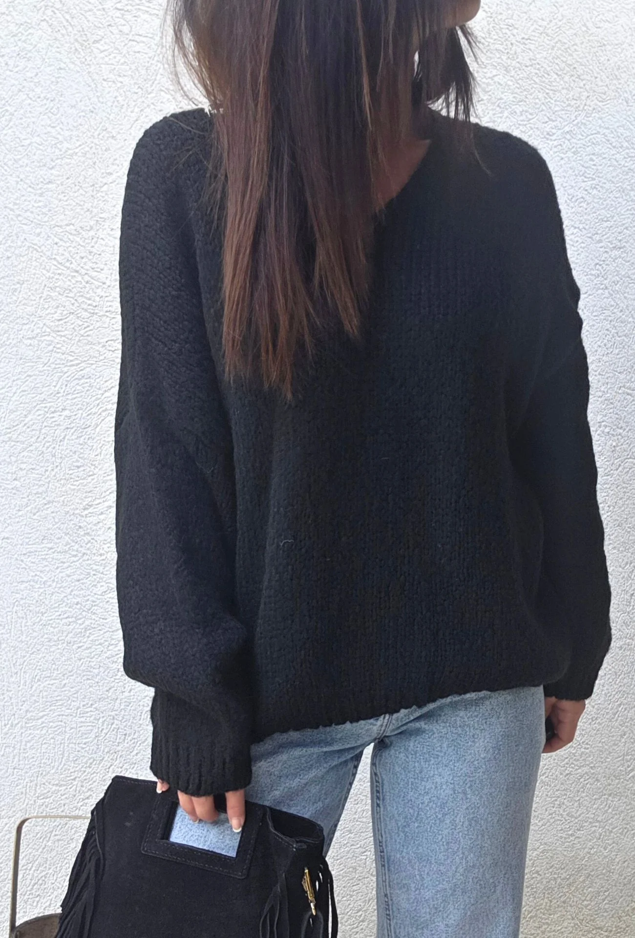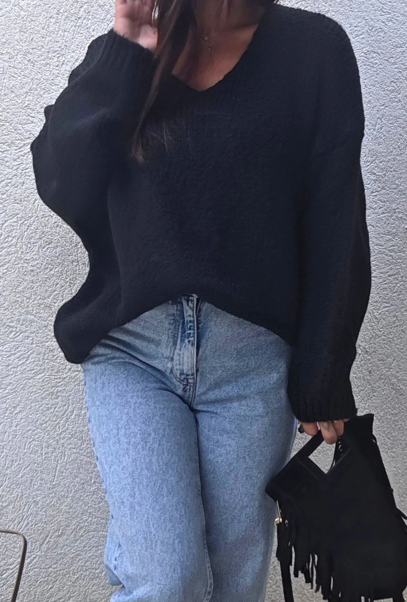 Le pull LOLA noir est une pièce essentielle du dressing hivernal, avec une allure sobre mais terriblement efficace. Son col en V flatteur et sa coupe loose offrent un confort absolu tout en gardant une touche de féminité discrète. Tricoté dans une maille douce et texturée, il se pose délicatement sur les épaules pour un effet cocooning sans alourdir la silhouette.