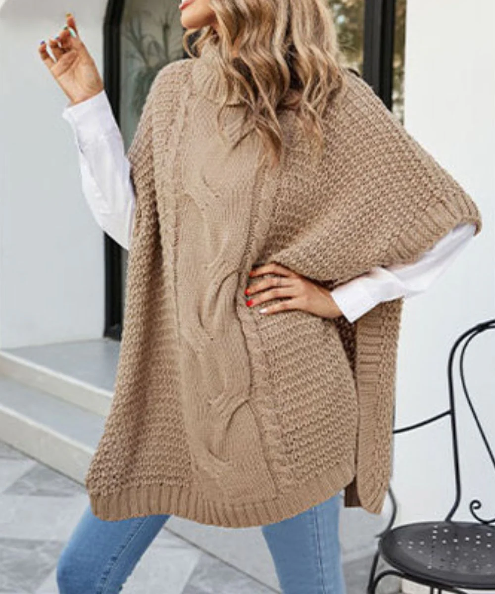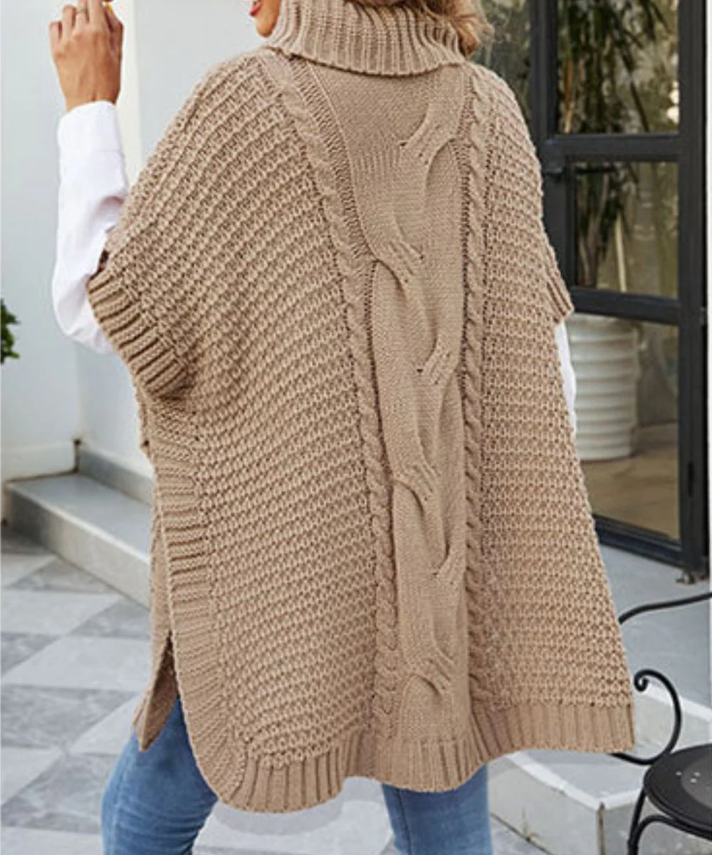 Le pull poncho femme est un haut urbain chi, muni d’un col roulé épais en coton pour un effet coupe-vent !
