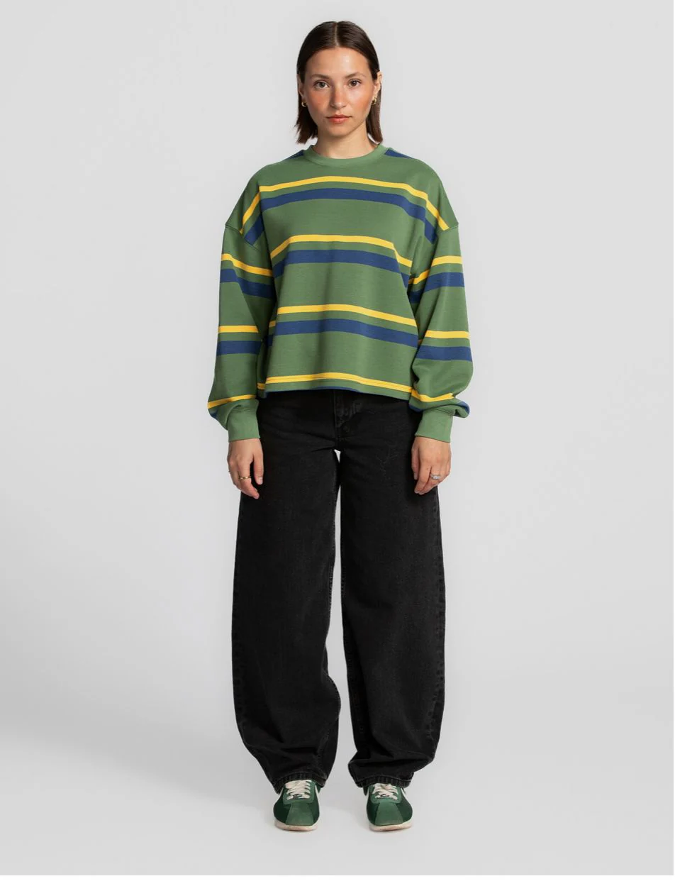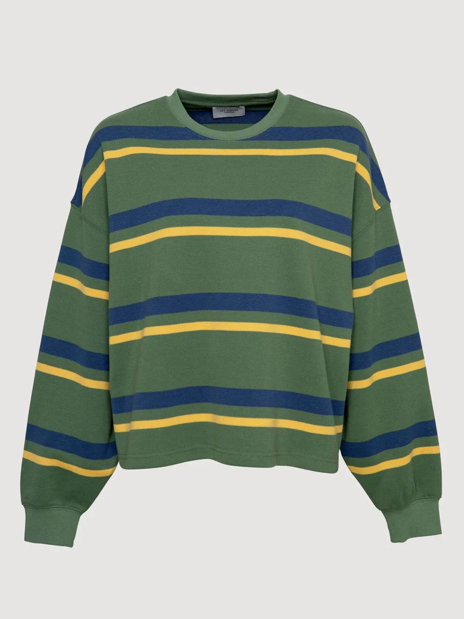 Encolure ronde. Épaules tombantes. Manches longues. Tissu piqué. Coupe ample.
