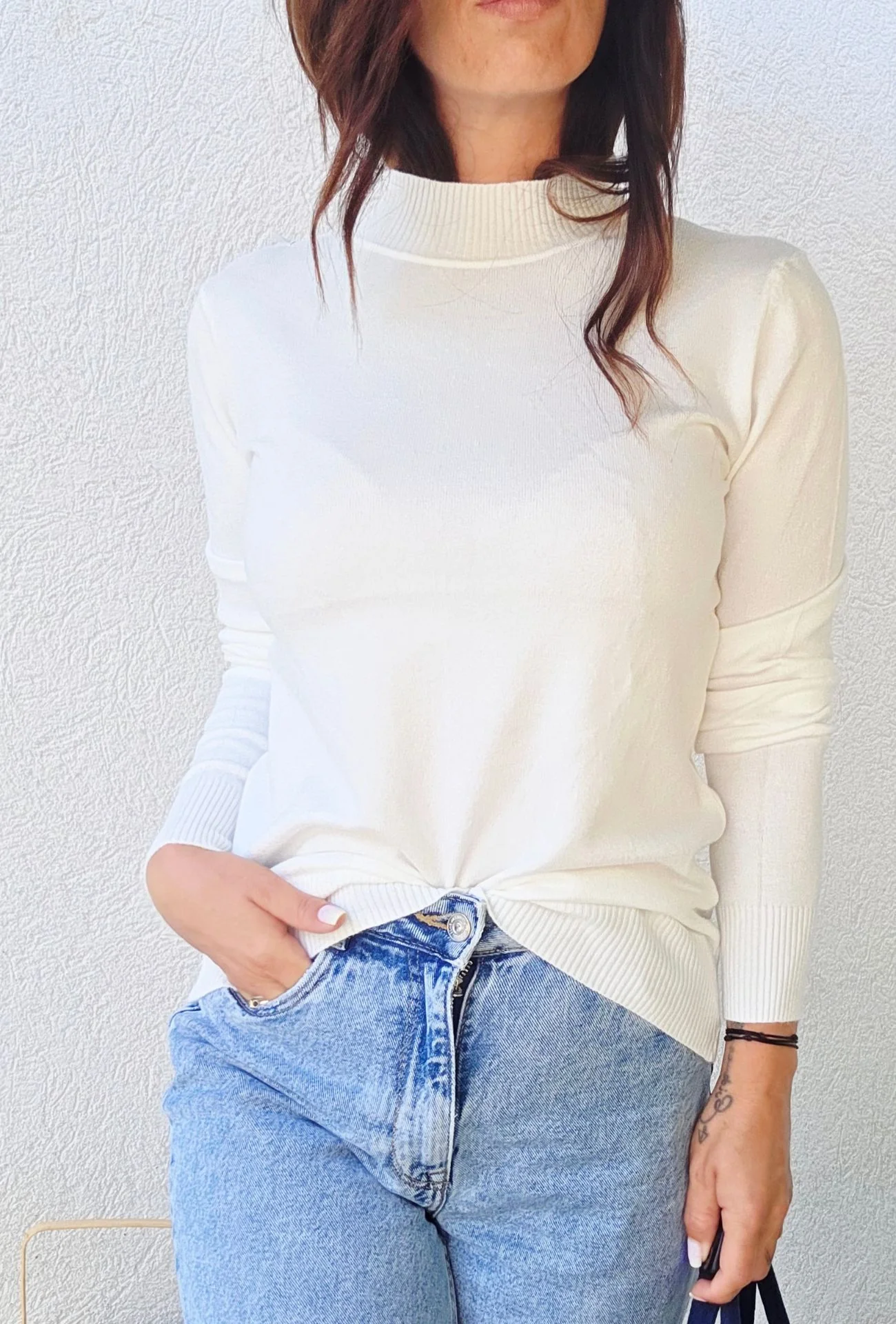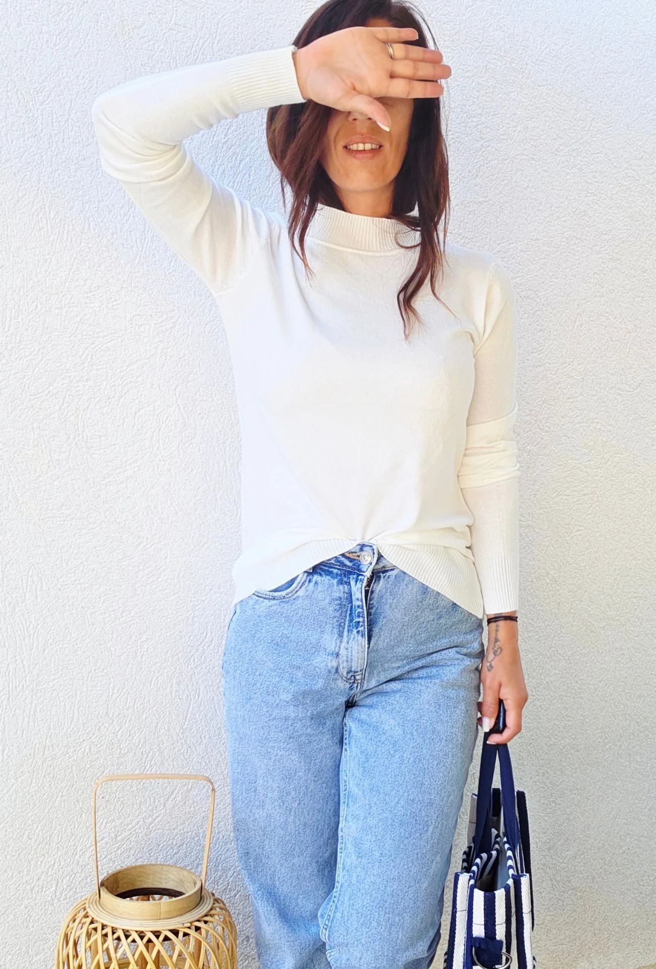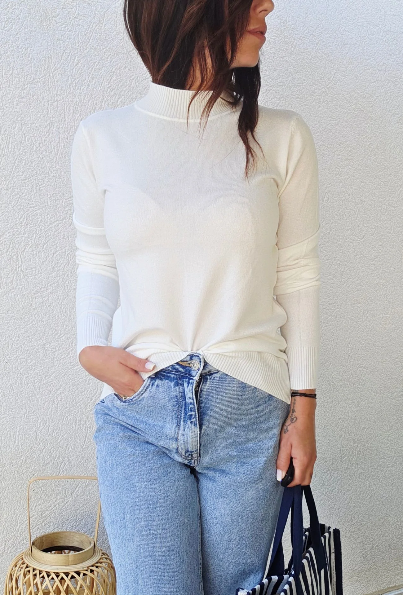 Épuré, lumineux et résolument chic, le pull ROMY blanc est l’allié parfait des looks minimalistes et stylés. Avec sa coupe droite légèrement ample et son col cheminée, il revisite le pull classique avec une touche de modernité. Sa couleur blanc cassé éclaire le teint et sublime toutes les silhouettes, tout en apportant une élégance naturelle à vos tenues du quotidien.