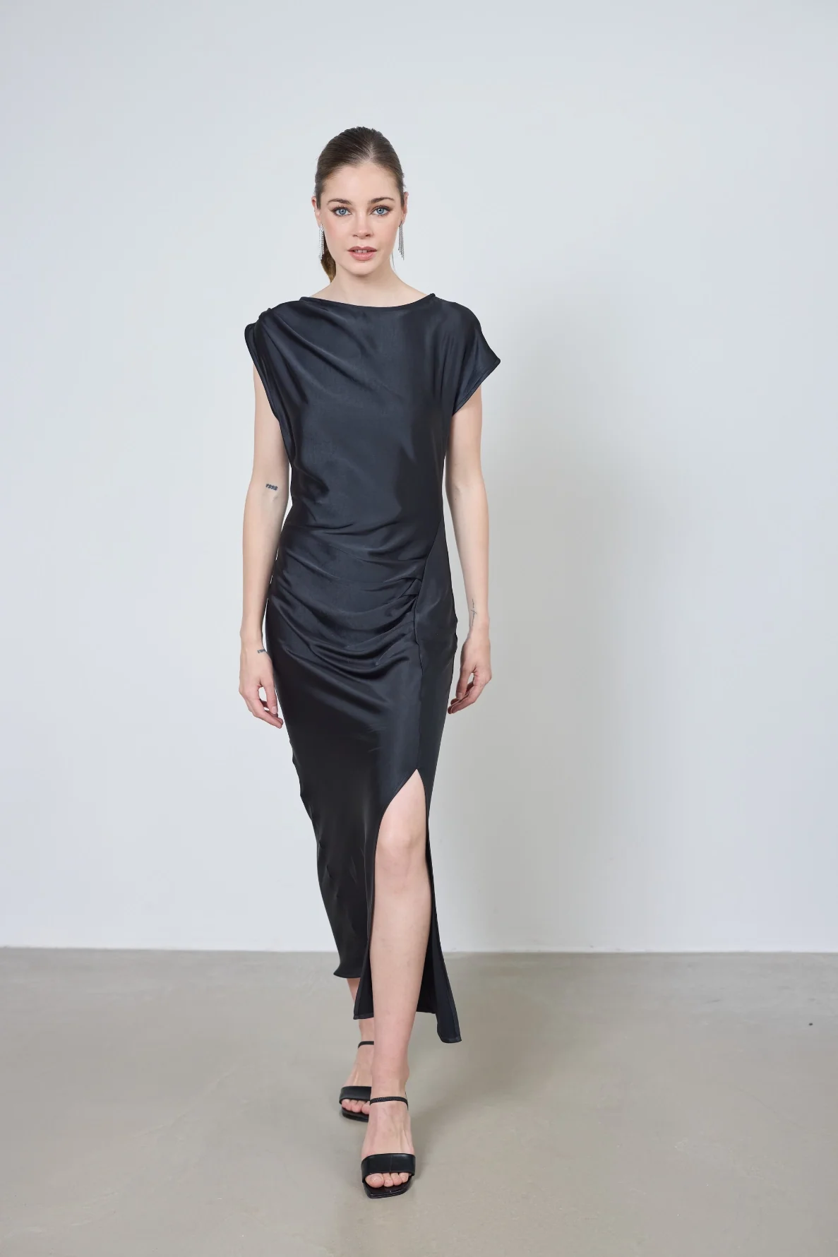 Misez sur l’élégance intemporelle avec la robe Christelle. Sa matière satinée et sa coupe fluide apportent une touche chic et raffinée, idéale pour les fêtes et les soirées.