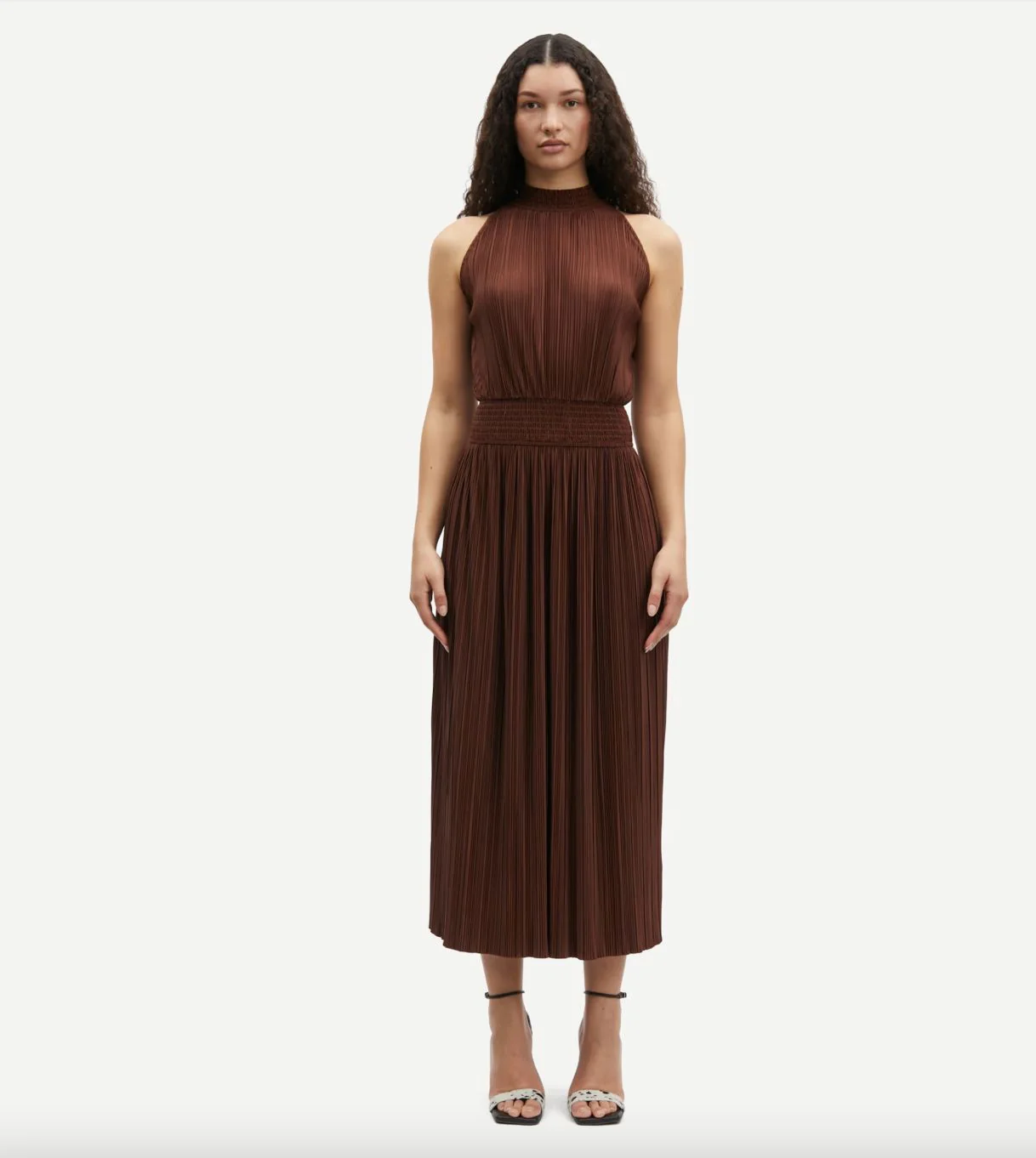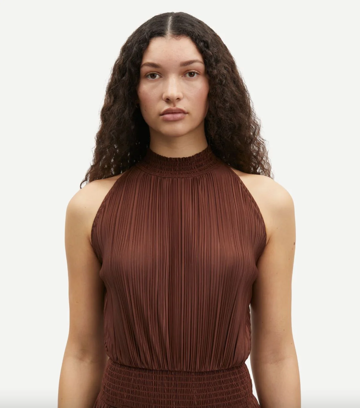Robe longue en jersey avec une coupe regular et une jupe trapèze. Dos nu et taille élastiquée smockée. Matière principale en mélange de polyester recyclé élastique. Matières: 93 % polyester recyclé, 7 % élasthanne Clara mesure 1m74 et porte une taille S.