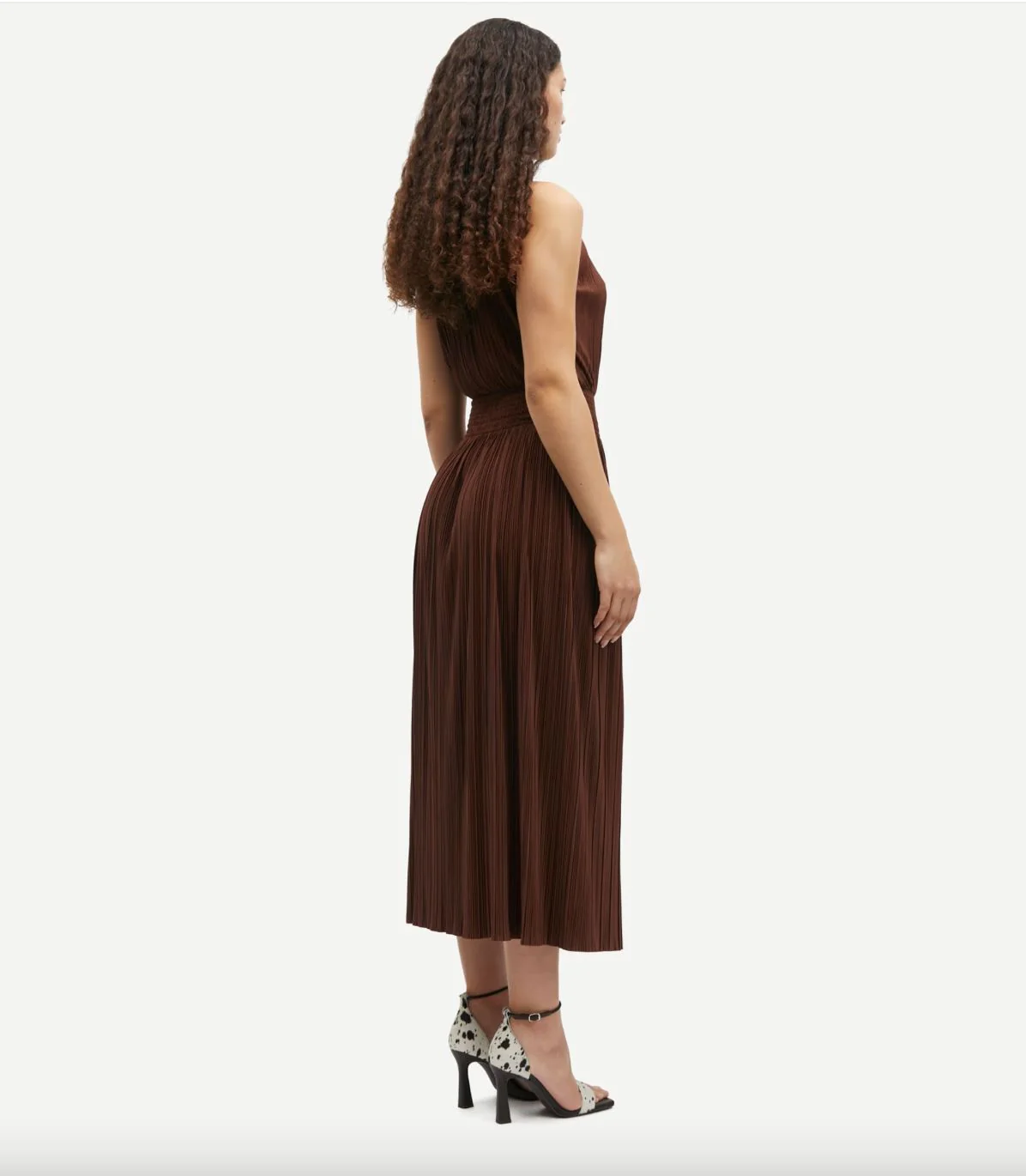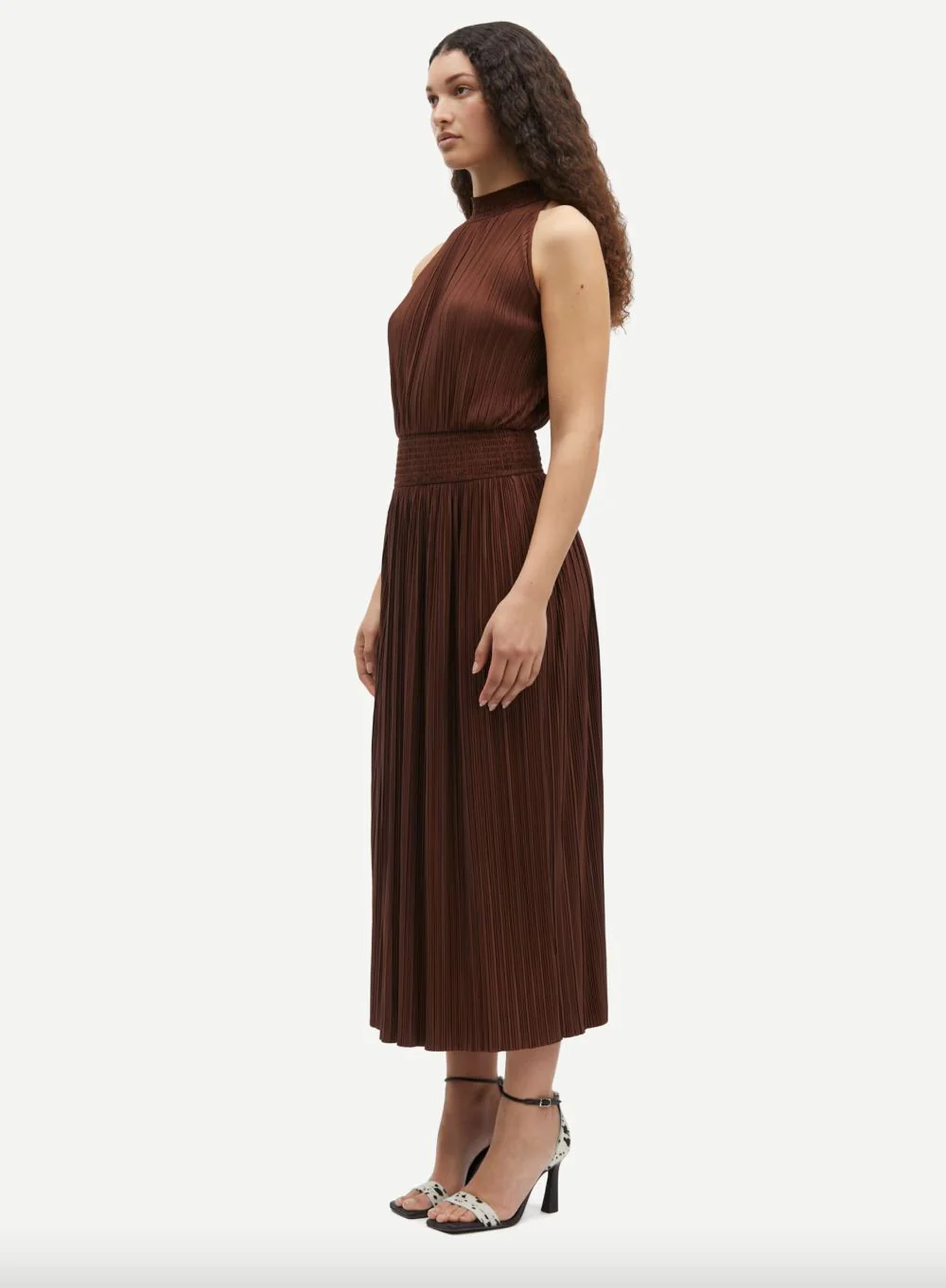 Robe longue en jersey avec une coupe regular et une jupe trapèze. Dos nu et taille élastiquée smockée. Matière principale en mélange de polyester recyclé élastique.