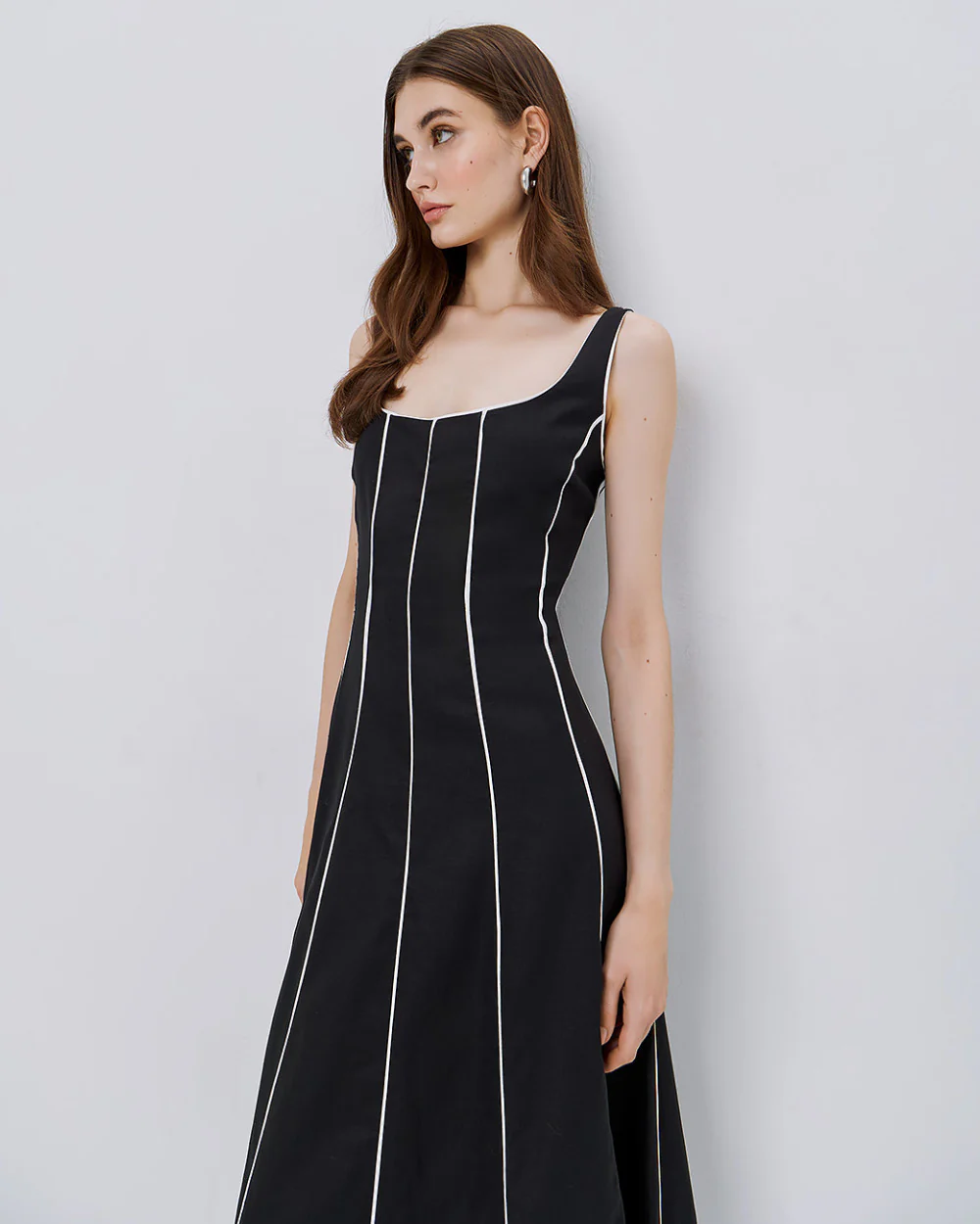 Robe Maxi Sans Manches à Détails Contrastants
