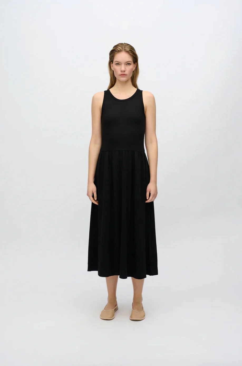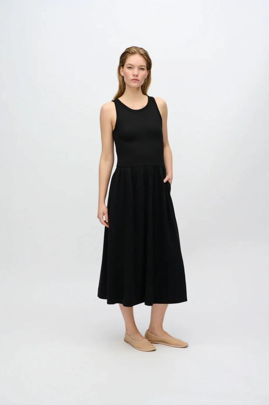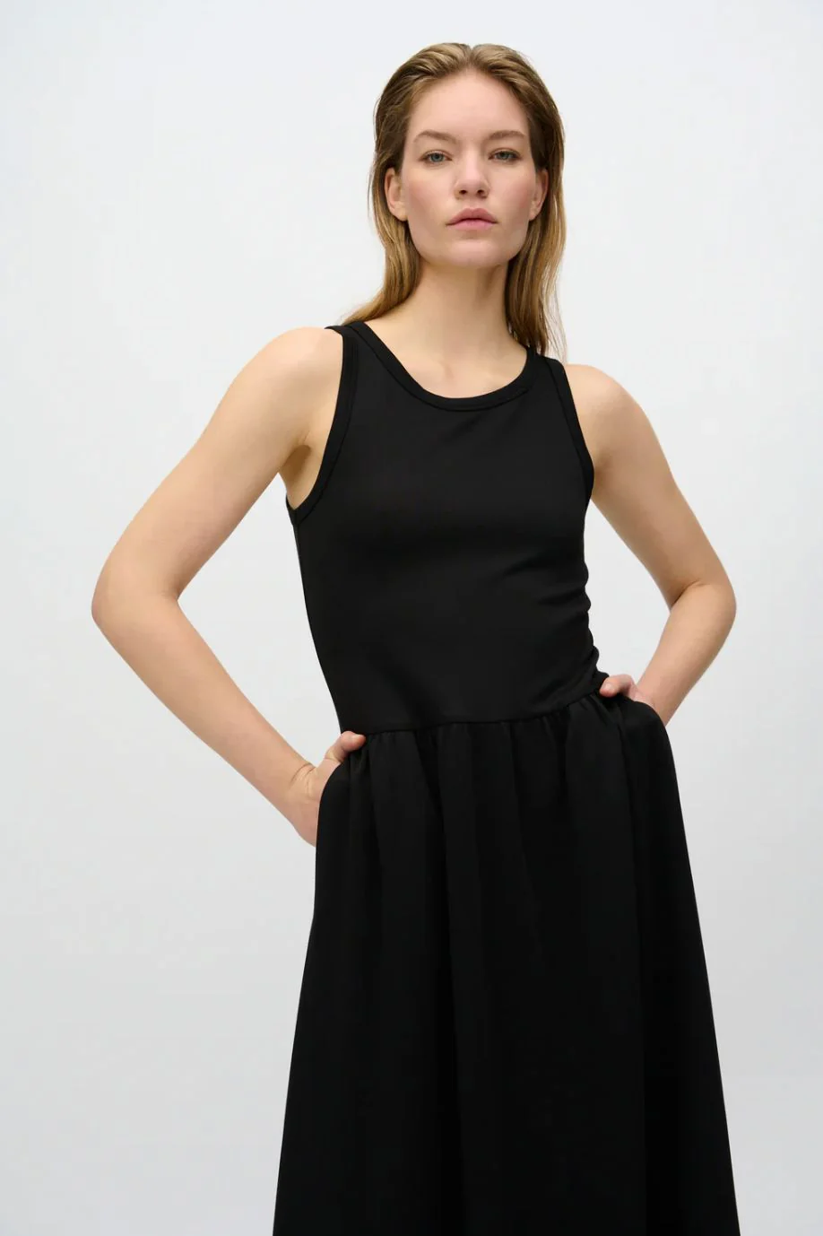 Robe longue sans manches. Col rond. Coupe classique. Jupe ample.