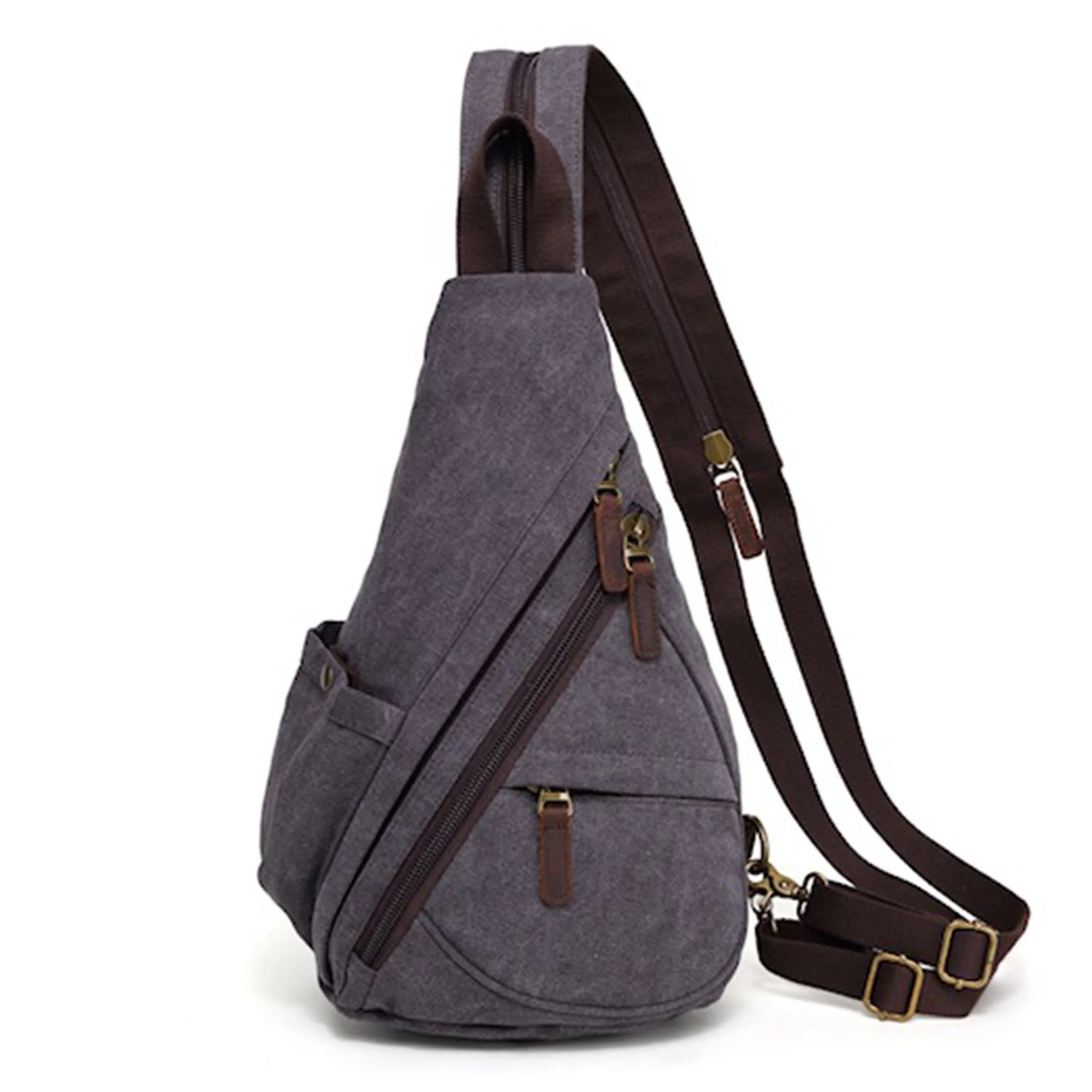 Sac à bandoulière « sling bag » en canevas de coton et cuir