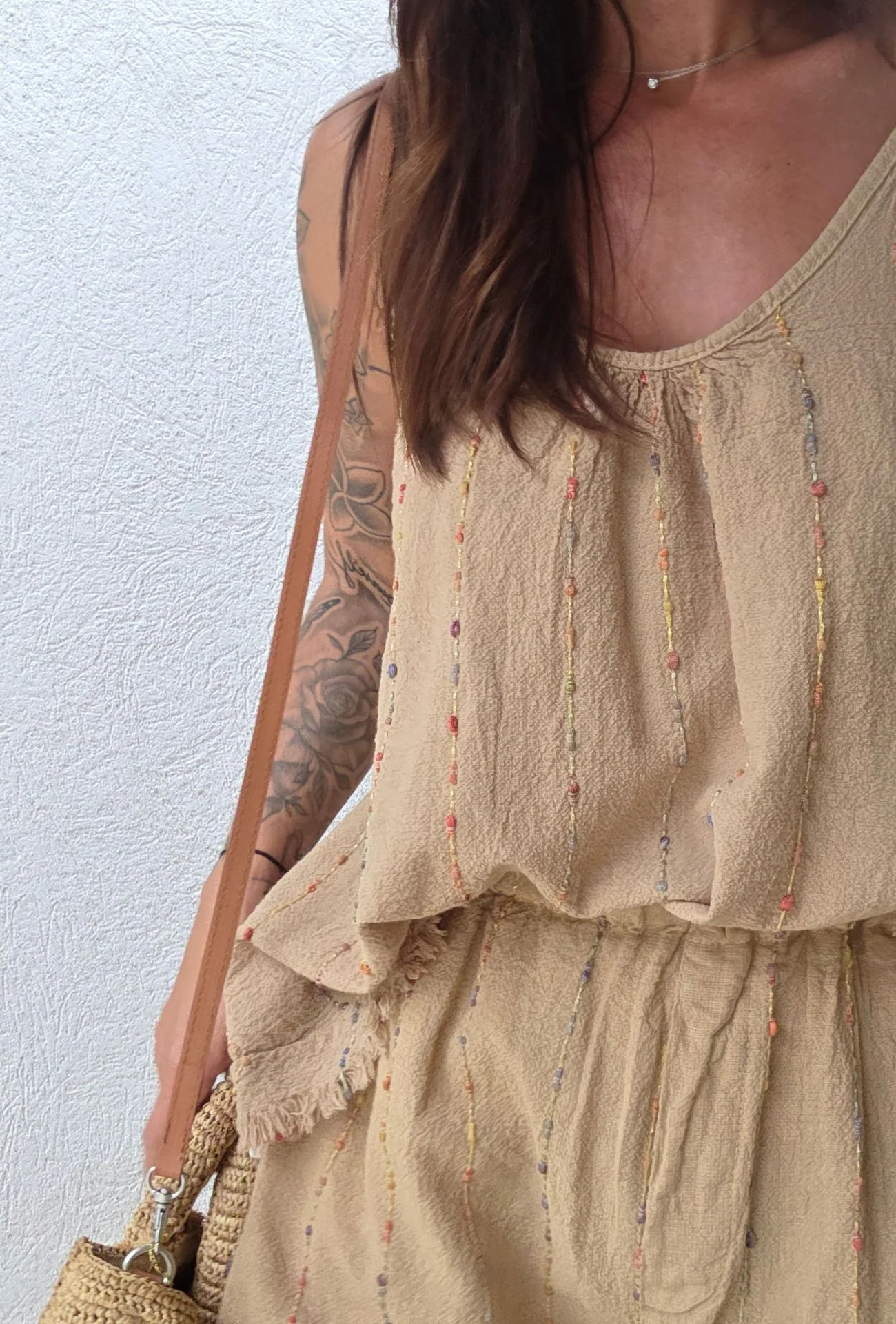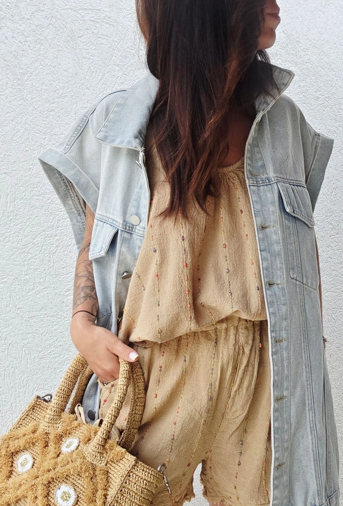 Portez-le avec son top coordonné pour une silhouette harmonieuse, ou osez le mix & match avec une chemise blanche oversize nouée à la taille. Ajoutez une paire de sandales à lanières et un panier tressé pour compléter ce look boho chic.