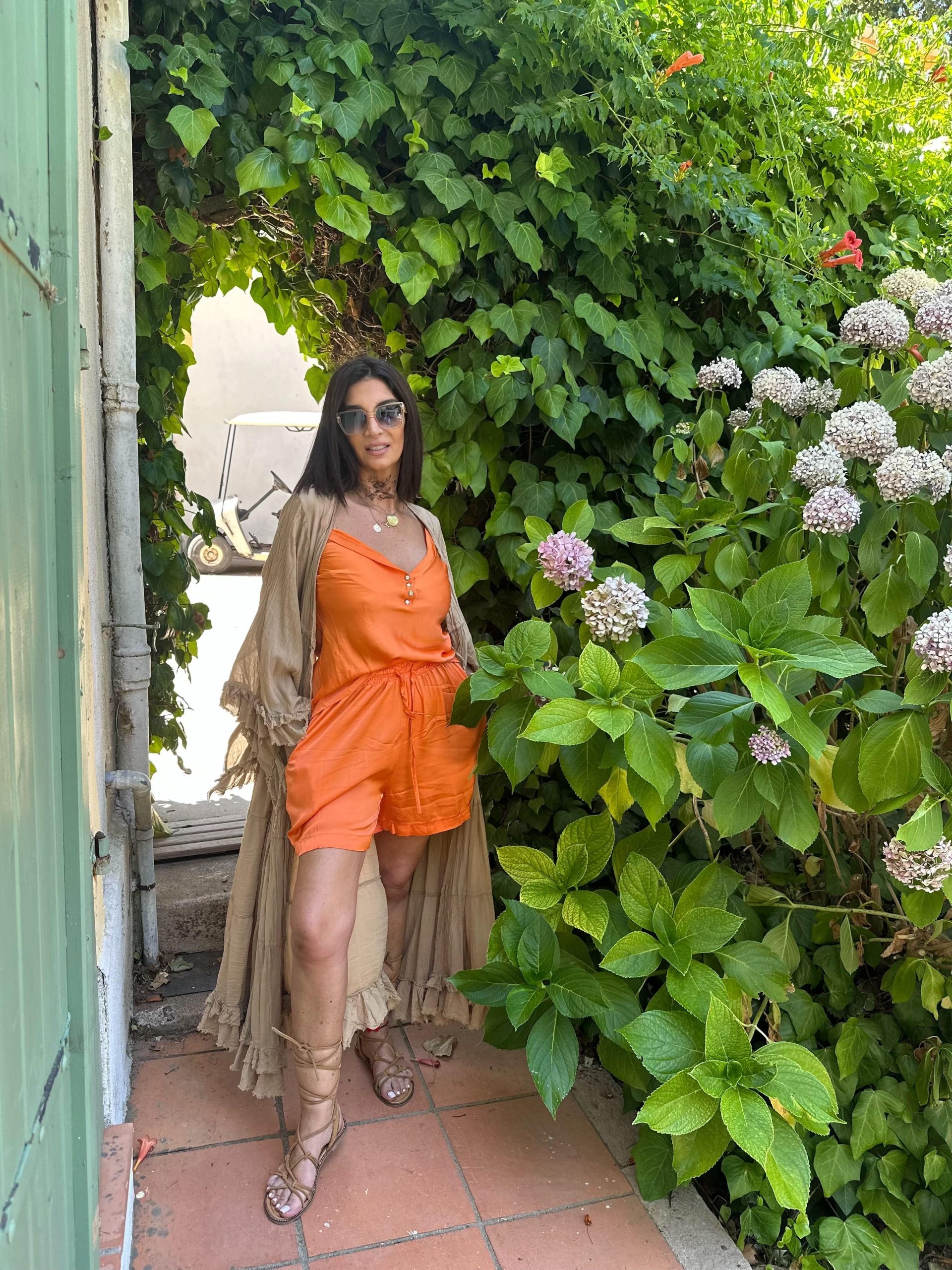 Le short SIMONE allie simplicité et douceur pour un look 100% estival. Sa matière en gaze de coton, légère et aérienne, offre un confort absolu tout au long de la journée. Sa taille élastiquée S’adapte à toutes les silhouettes pour une liberté de mouvement sans compromis Description Short forme DROITE SATIN Élastique à la taille […]