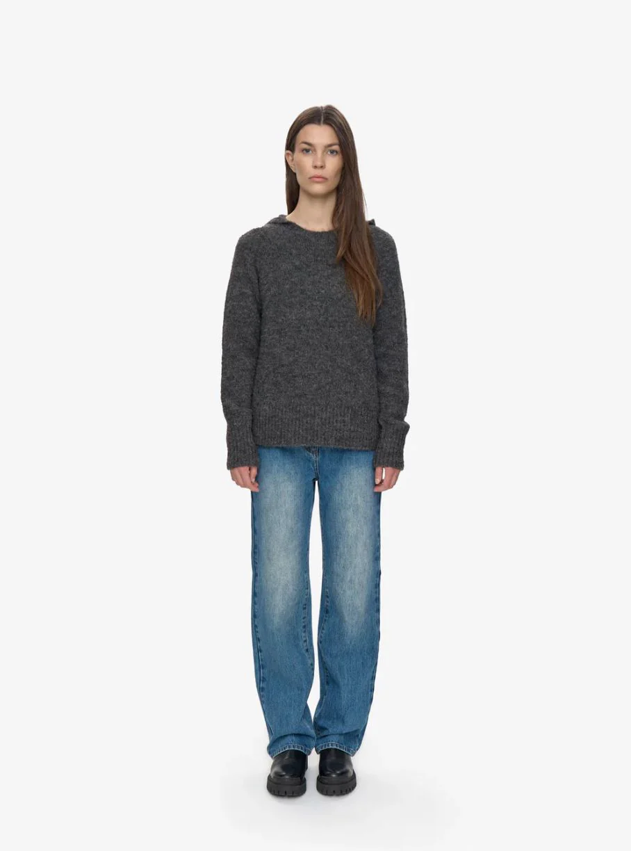 Sweat à capuche en laine gris Angela