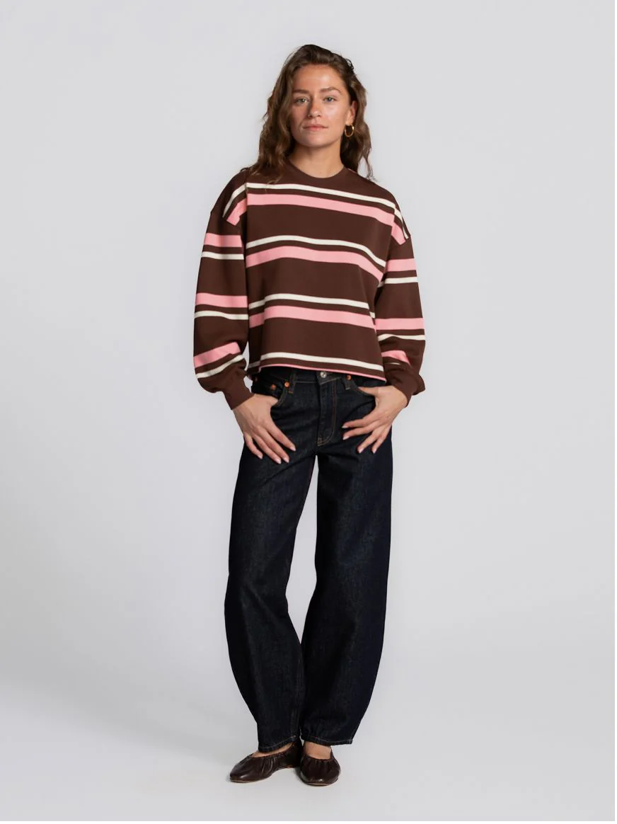 Encolure ronde. Épaules tombantes. Manches longues. Tissu piqué. Coupe ample. Matières : 50% coton, 50% polyester. Clara mesure 1m74 et porte une taille S.