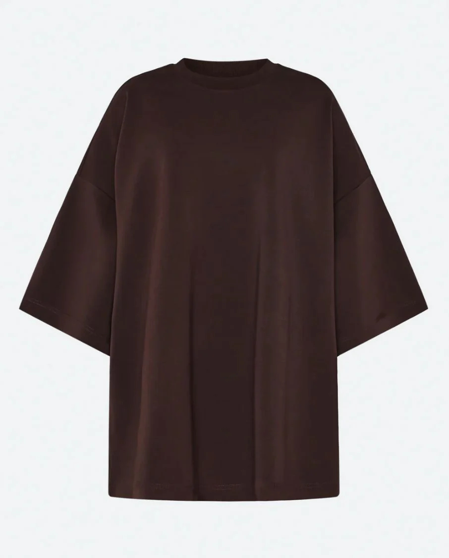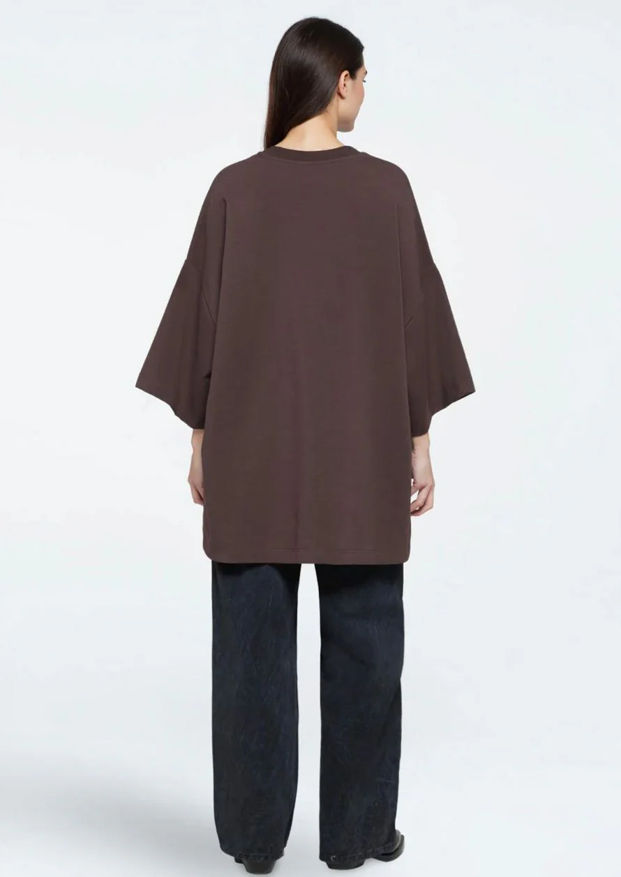 T-shirt oversize marron pour un look moderne et décontracté.