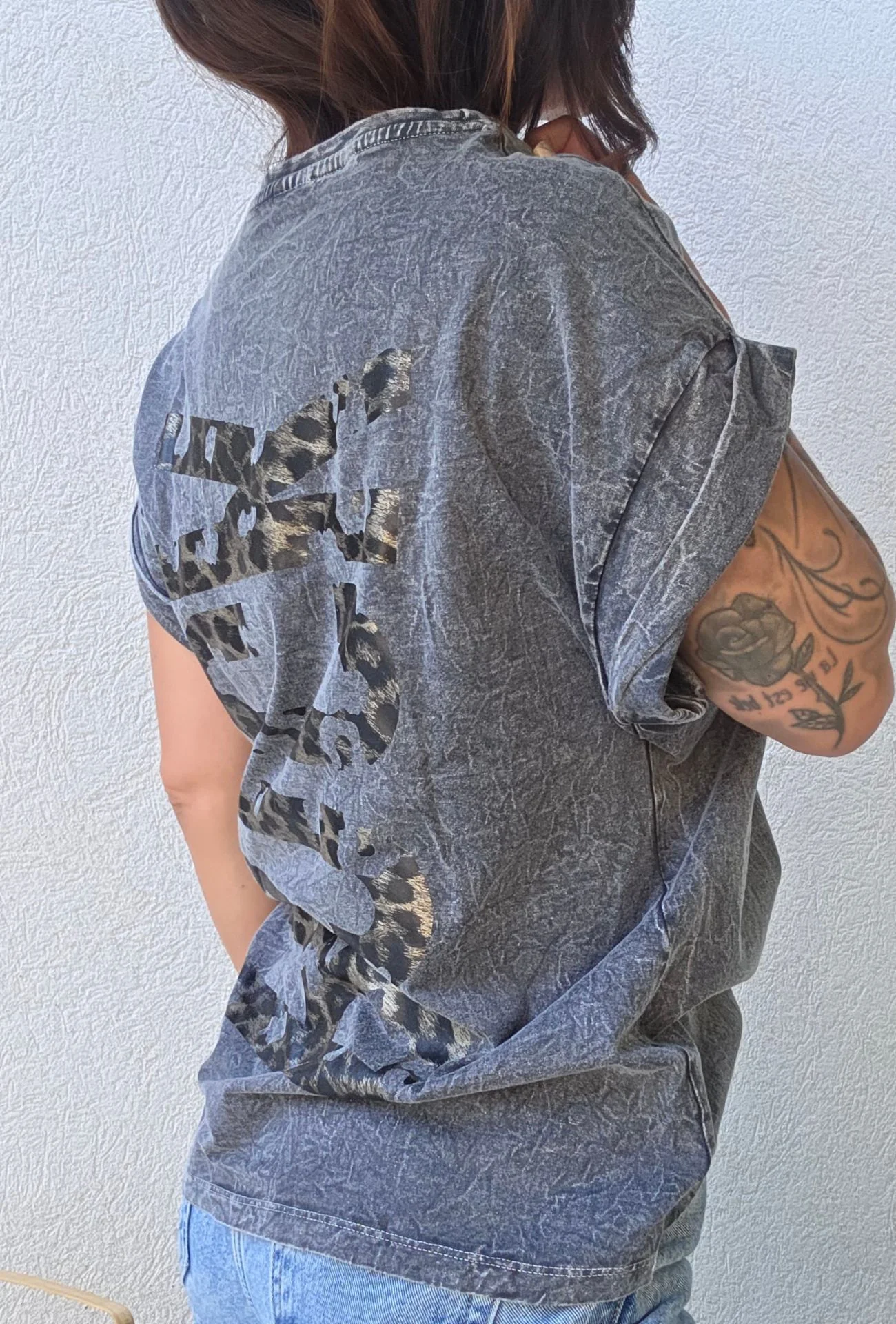 Le tee-shirt Rock Léopard est la pièce idéale pour un look casual avec une touche audacieuse. Confectionné en 100% coton pour un confort optimal, il arbore un effet délavé vintage avec un imprimé « Rock » à l’arrière, en motif léopard, qui ajoute du caractère à votre tenue. Ce tee-shirt oversize et à manches retroussées est parfait pour les journées décontractées où le style est de mise.