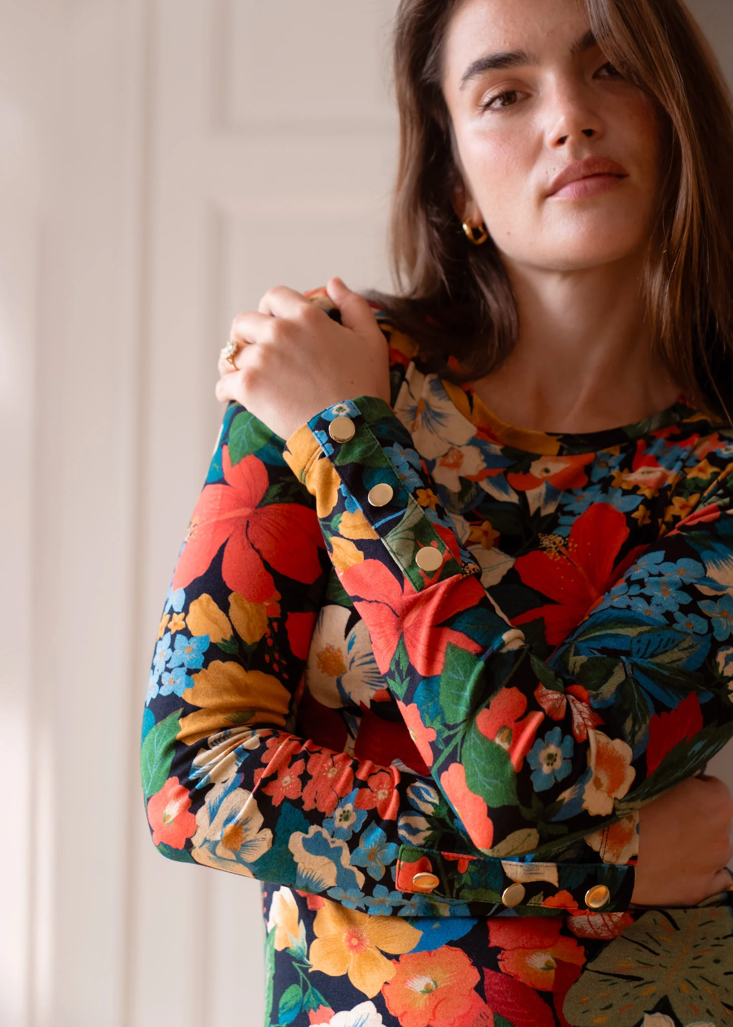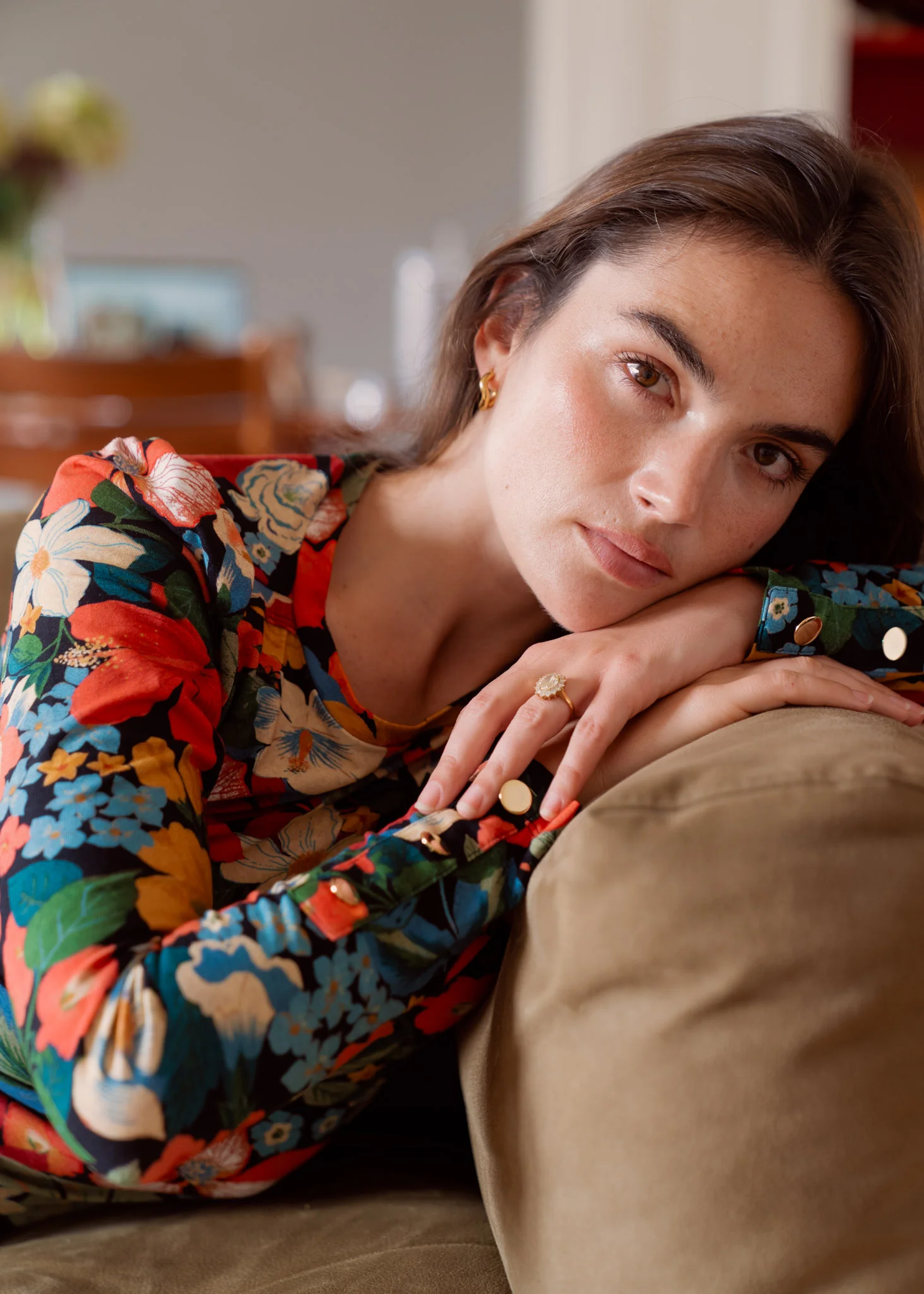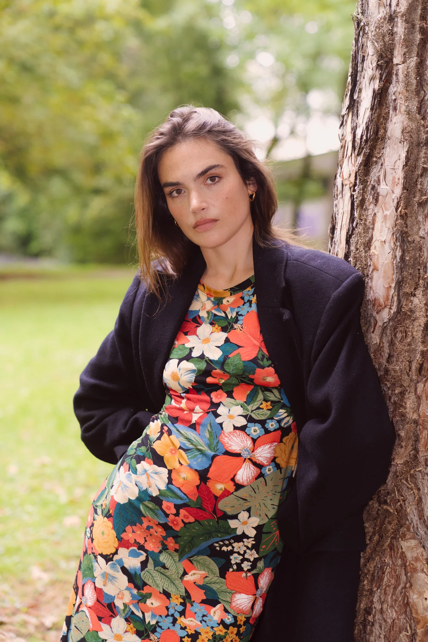 La robe Thelma est la première inspiration de la collection. Elle fait partie des indispensables de nos vestiaires, c’est pour cela que nous l’avons déclinée dans tous nos imprimés. Sa forme, intemporelle, est légèrement ajustée, et les manches sont agrémentées de 3 boutons dorées. On l’adore avec une veste en jean et des sandales pour le weekend ou bien avec des mocassins classiques et un pull oversized pour un look plus urbain.
