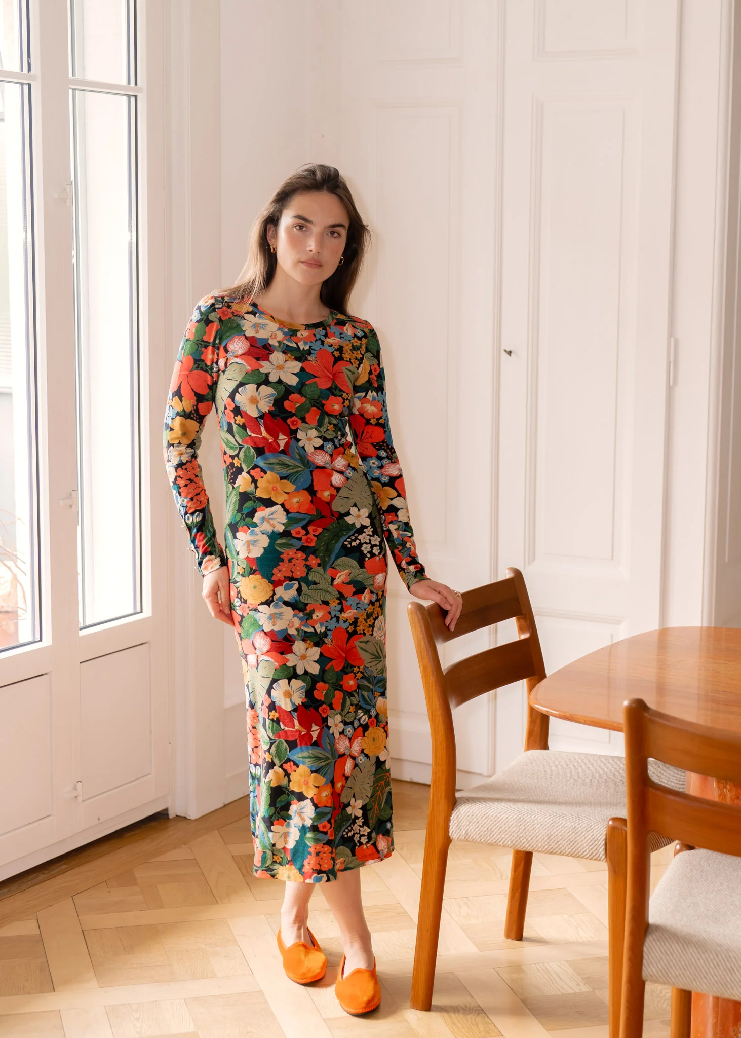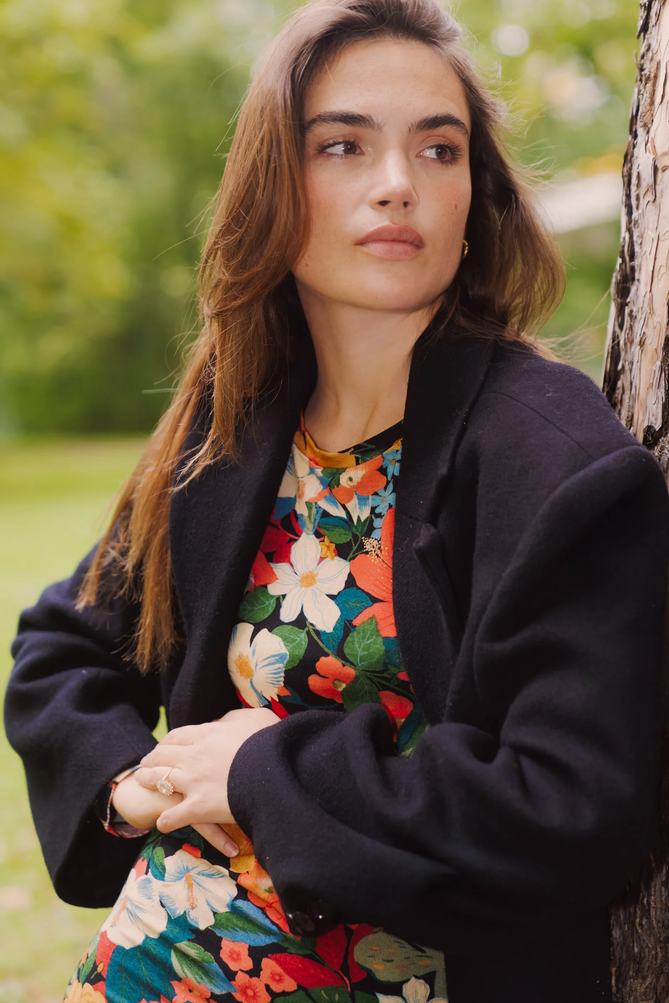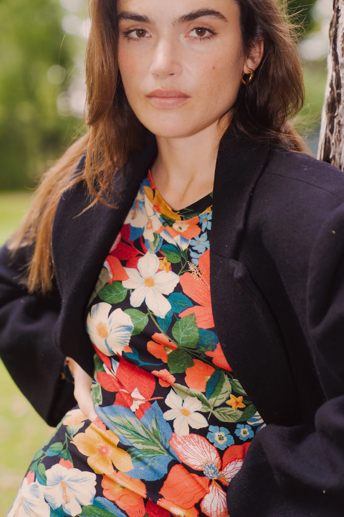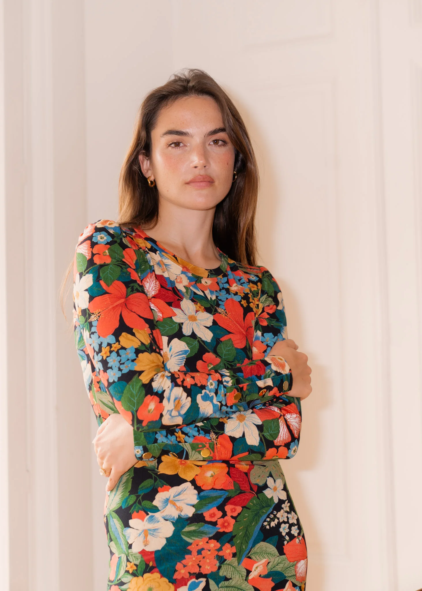 La robe Thelma est la première inspiration de la collection. Elle fait partie des indispensables de nos vestiaires, c’est pour cela que nous l’avons déclinée dans tous nos imprimés. Sa forme, intemporelle, est légèrement ajustée, et les manches sont agrémentées de 3 boutons dorées. On l’adore avec une veste en jean et des sandales pour le weekend ou bien avec des mocassins classiques et un pull oversized pour un look plus urbain.