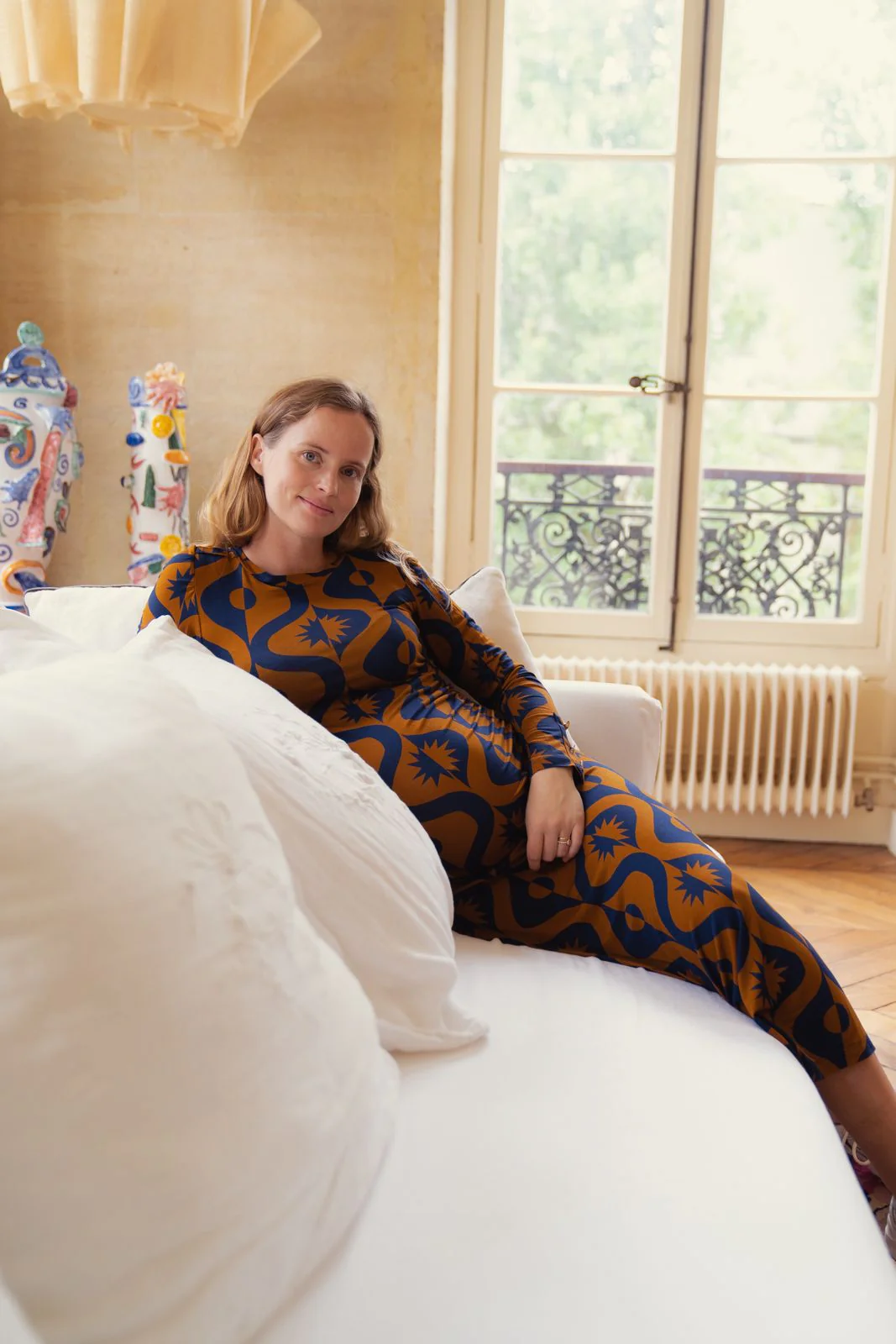 Découvrez notre nouvel imprimé Full Moon, le coup de coeur de la saison ! Retrouvez-le sur notre indémodable robe Thelma que toutes les femmes enceintes rêvent de porter en toutes situations. Elle est ici déclinée dans le nouvel imprimé Full Moon, sur fond noir pour affiner la silhouette et imprimés fleuris roses pour égayer votre teint.