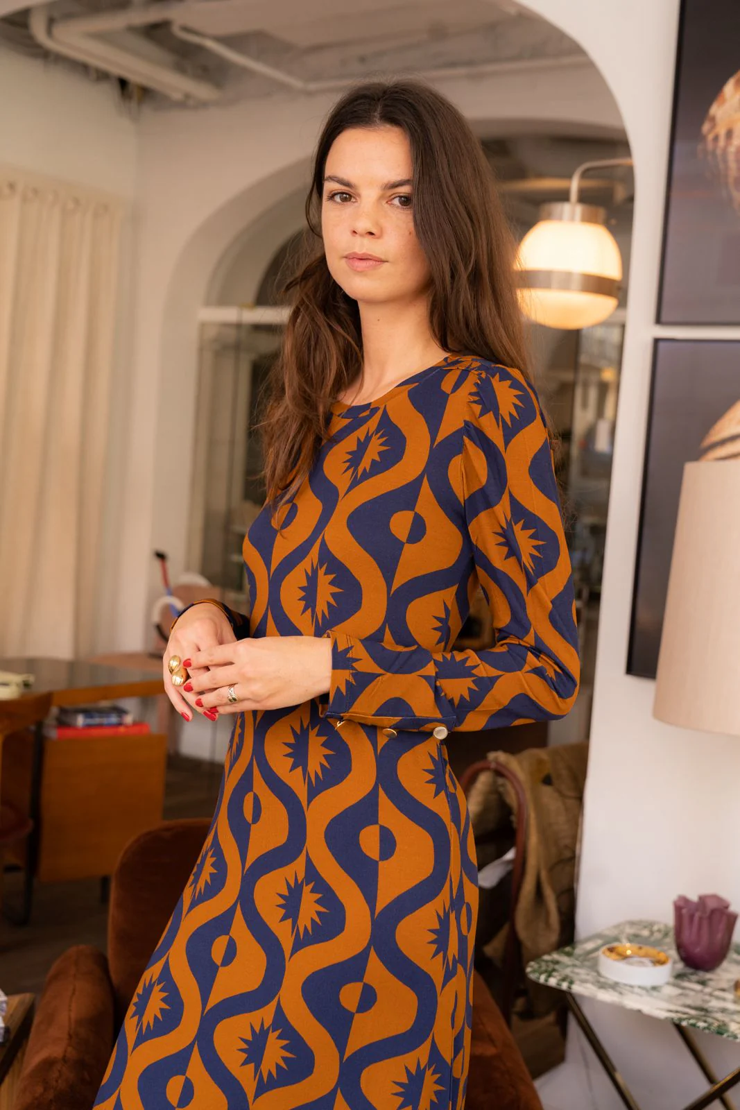 La robe Thelma est la première inspiration de la collection. Elle fait partie des indispensables de nos vestiaires, c’est pour cela que nous l’avons déclinée dans tous nos imprimés. Sa forme, intemporelle, est légèrement ajustée, et les manches sont agrémentées de 3 boutons dorées. On l’adore avec une veste en jean et des sandales pour le weekend ou bien avec des mocassins classiques et un pull oversized pour un look plus urbain.