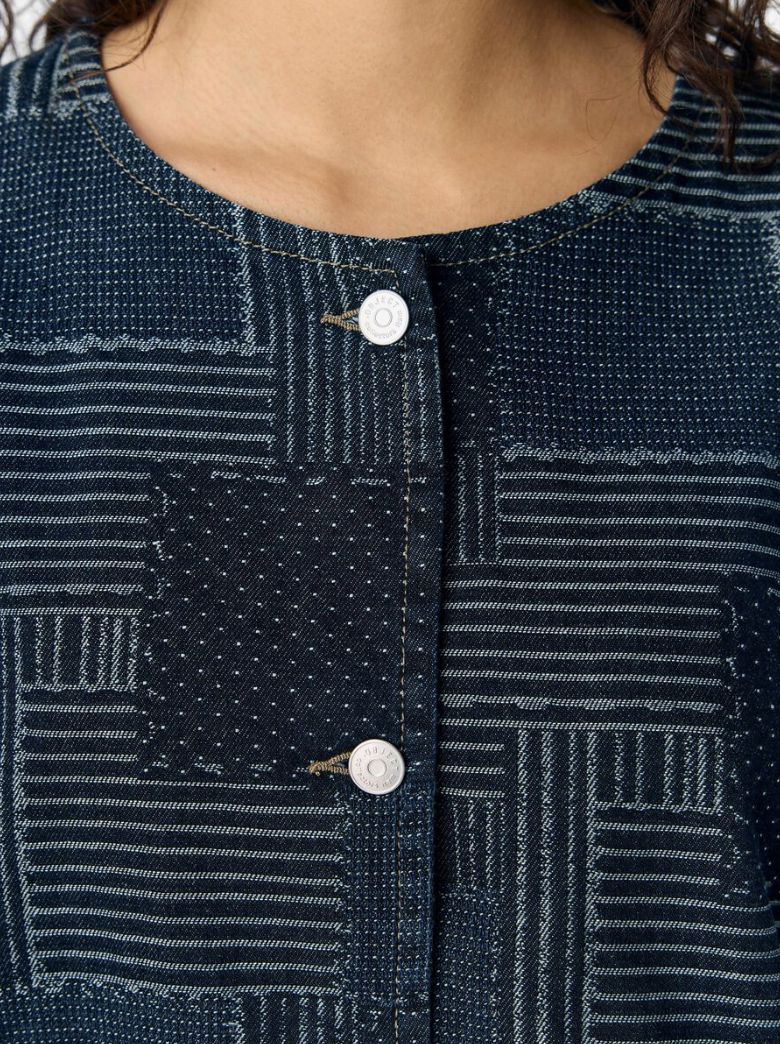 Chemise manches courtes en denim. Pièce d’un ensemble assorti. Motif patchwork. Col rond. Boutonnage sur le devant. Coupe classique.