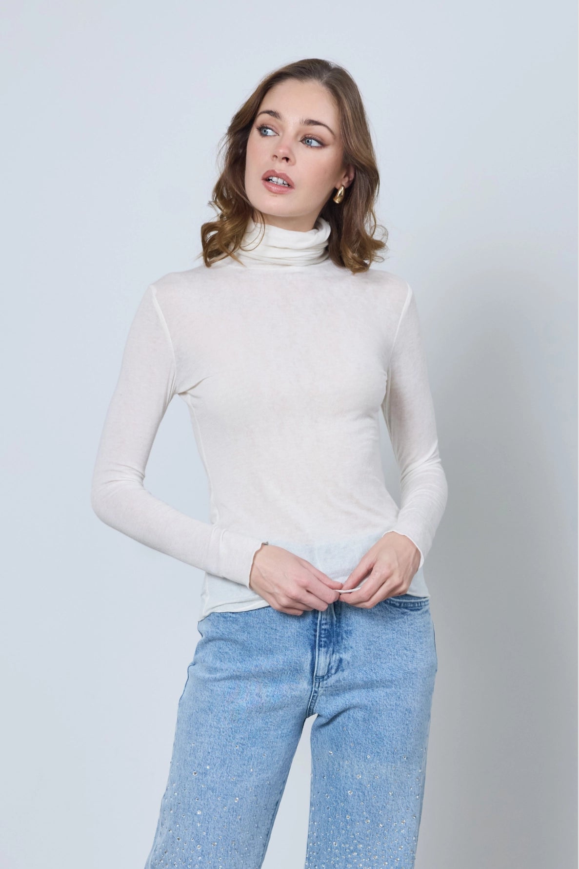 Découvrez le seconde peau Isabelle, léger et élégant. Sa matière fine et son col roulé délicat en font la base parfaite pour toutes vos superpositions.