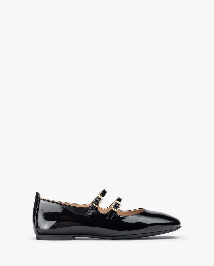 Ballerines plates mary-jane à bout carré. Fabriqué en cuir verni Double bride avec boucle sur le cou-de-pied. Semelle en caoutchouc léger, souple et antidérapant. Un modèle confortable et polyvalent à porter tous les jours.