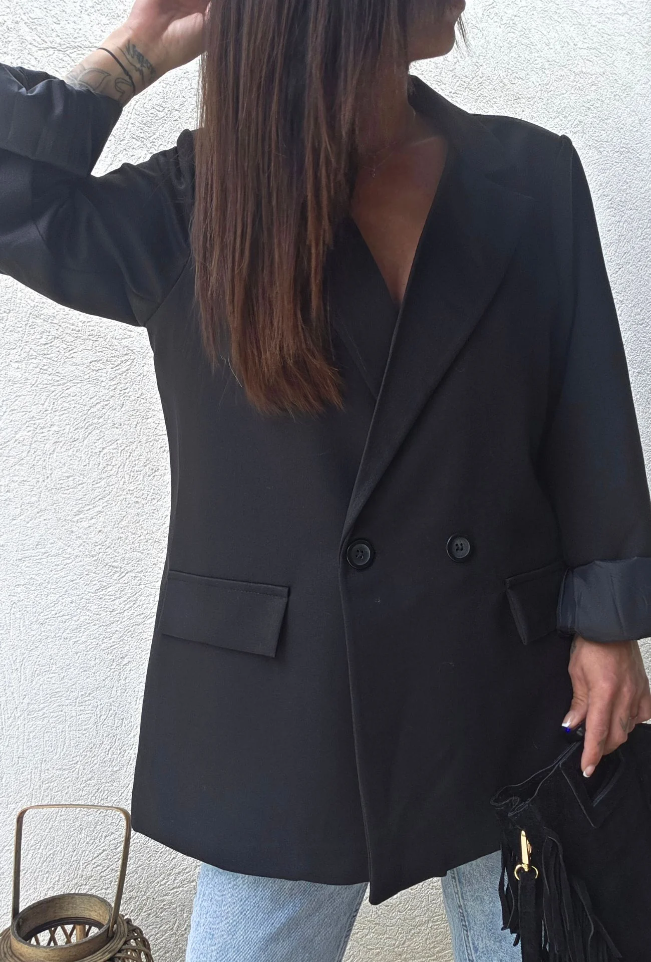 Associez-la à un jean mom et des escarpins noirs comme sur les photos pour un look effortless ultra stylé. Ajoutez un sac à franges ou une pochette dorée pour un twist bohème ou glamour selon votre humeur.